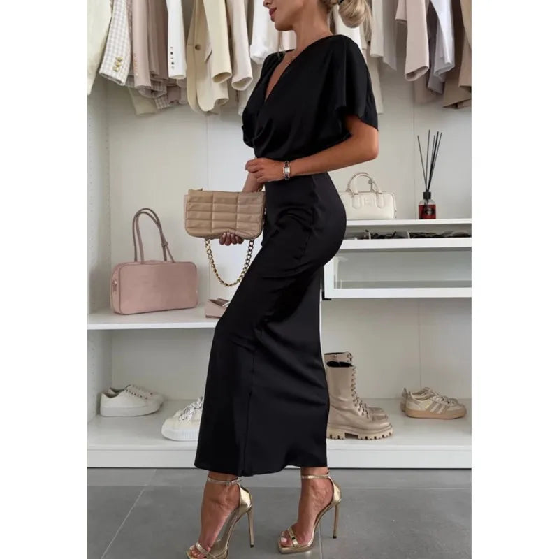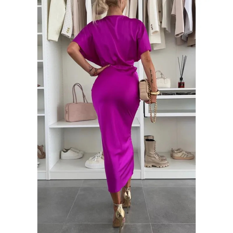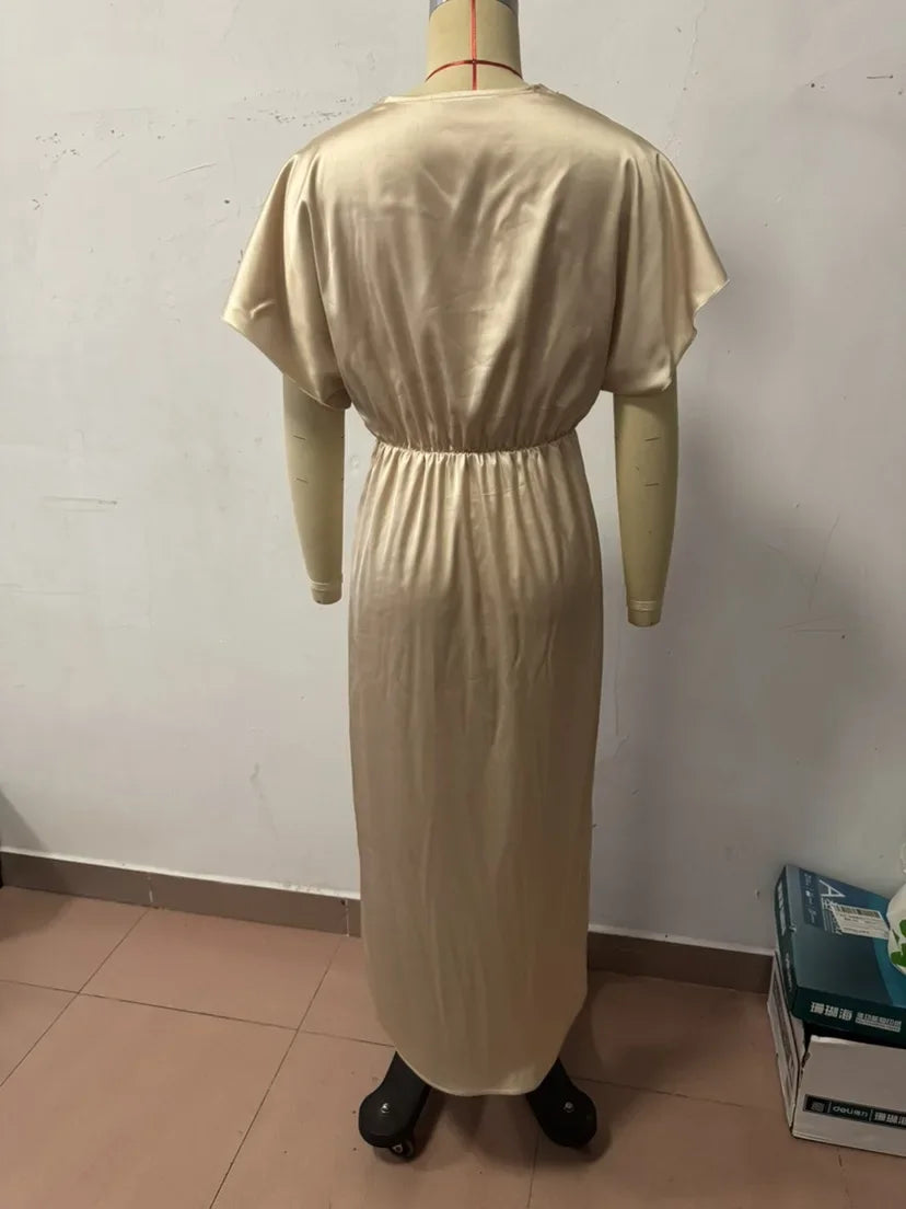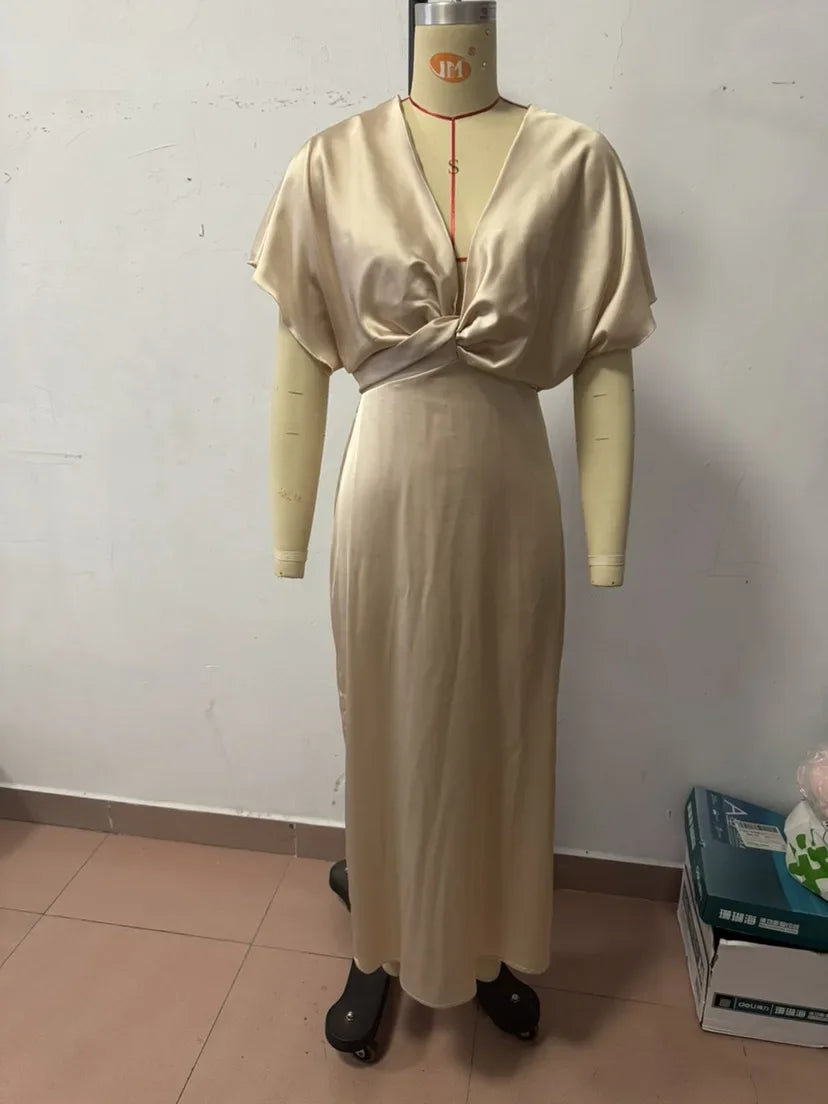 Fashion Sexy Satin Dress Women's Batwing Short Sleeve Wrap V-neck Twist Bodycon Midi Long Dresses Party High Street Dresses