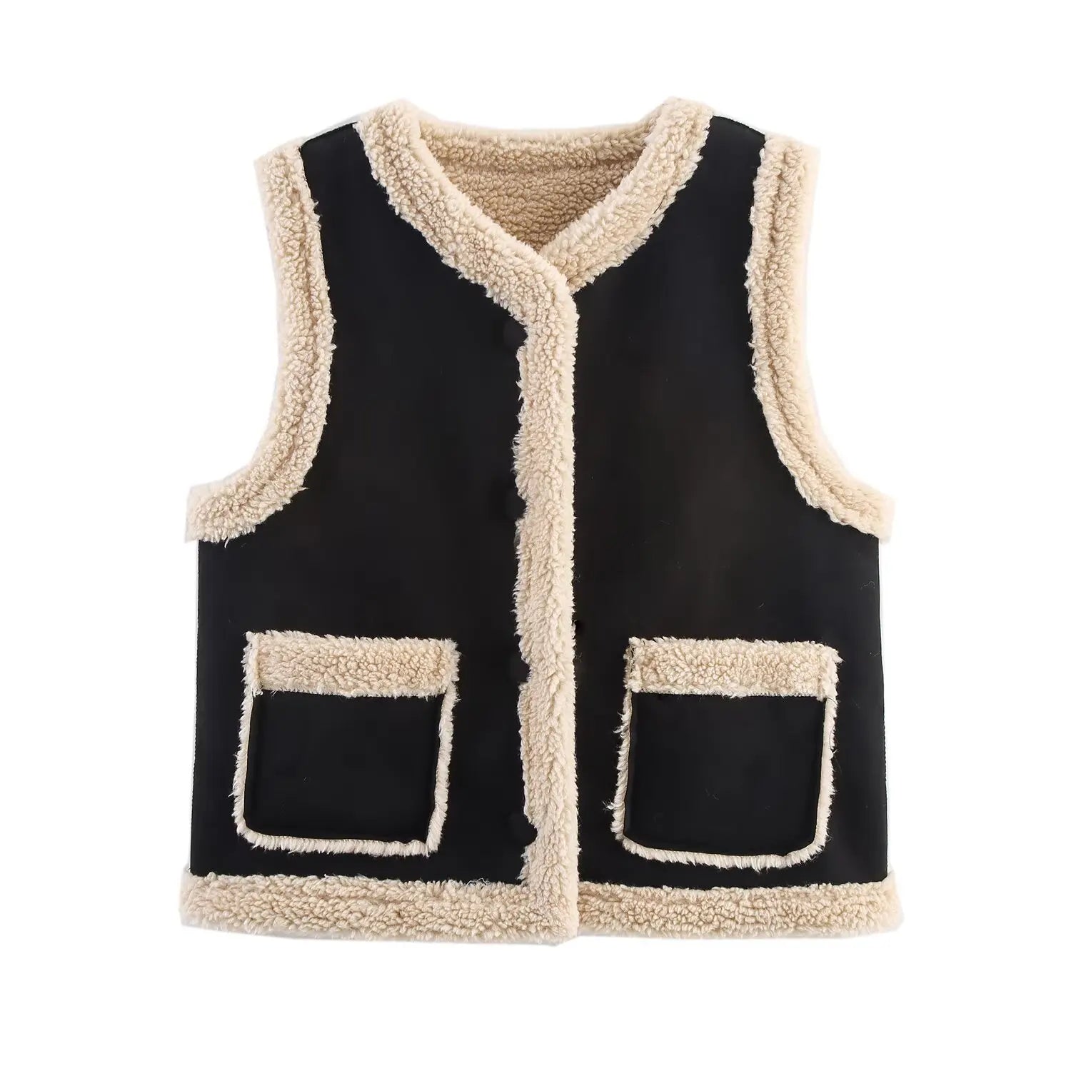 New Autumn Winter Fashionable Vest/Outerwear Jacket Double-Sided Wear/Women's Sleeveless Vest Brown Lamb Fur Retro Style Coat/Western Style.