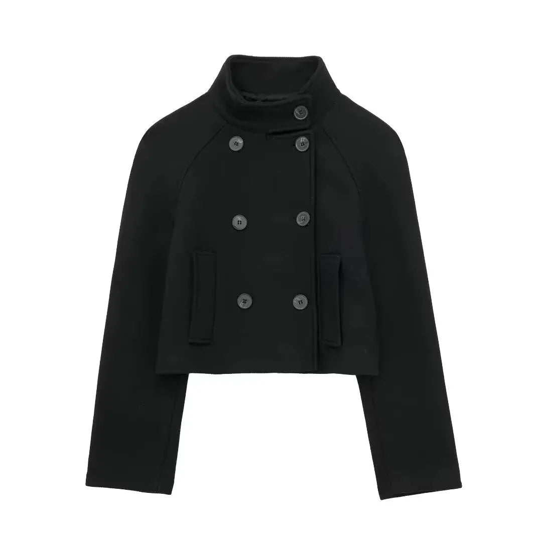 Detail Button Fleece Jacket/Double-Breasted Stand Collar/Short Sized Style Woolen Fabric Coat.