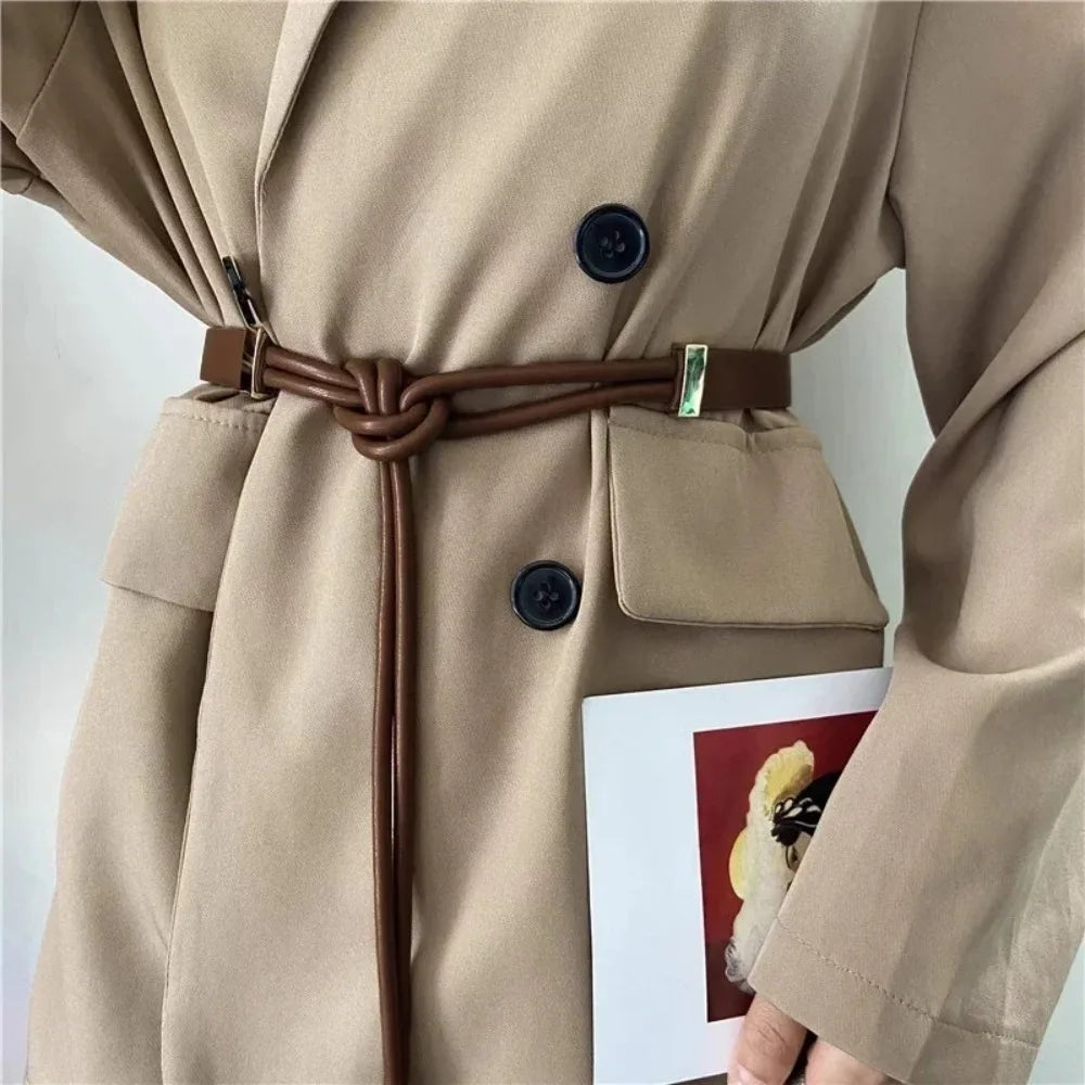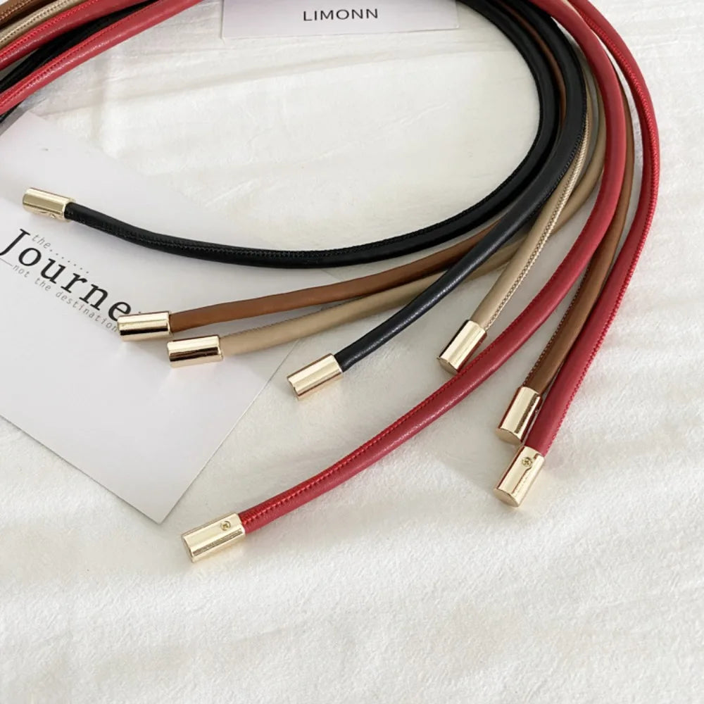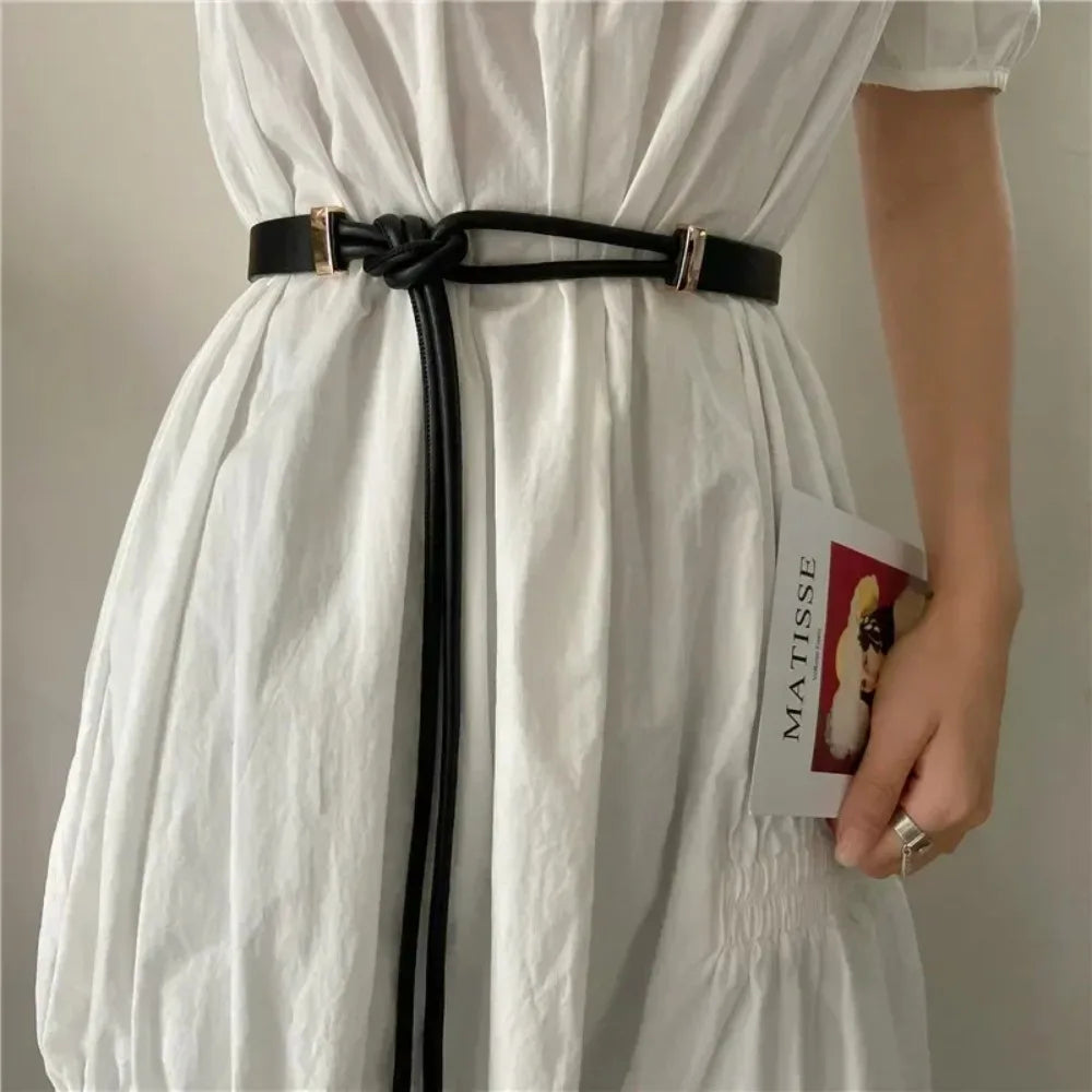 Fashion Non-hole Knot Style Belts PU Leather Solid Color Thin Belt Lace-up Waist Strap Jeans Dress