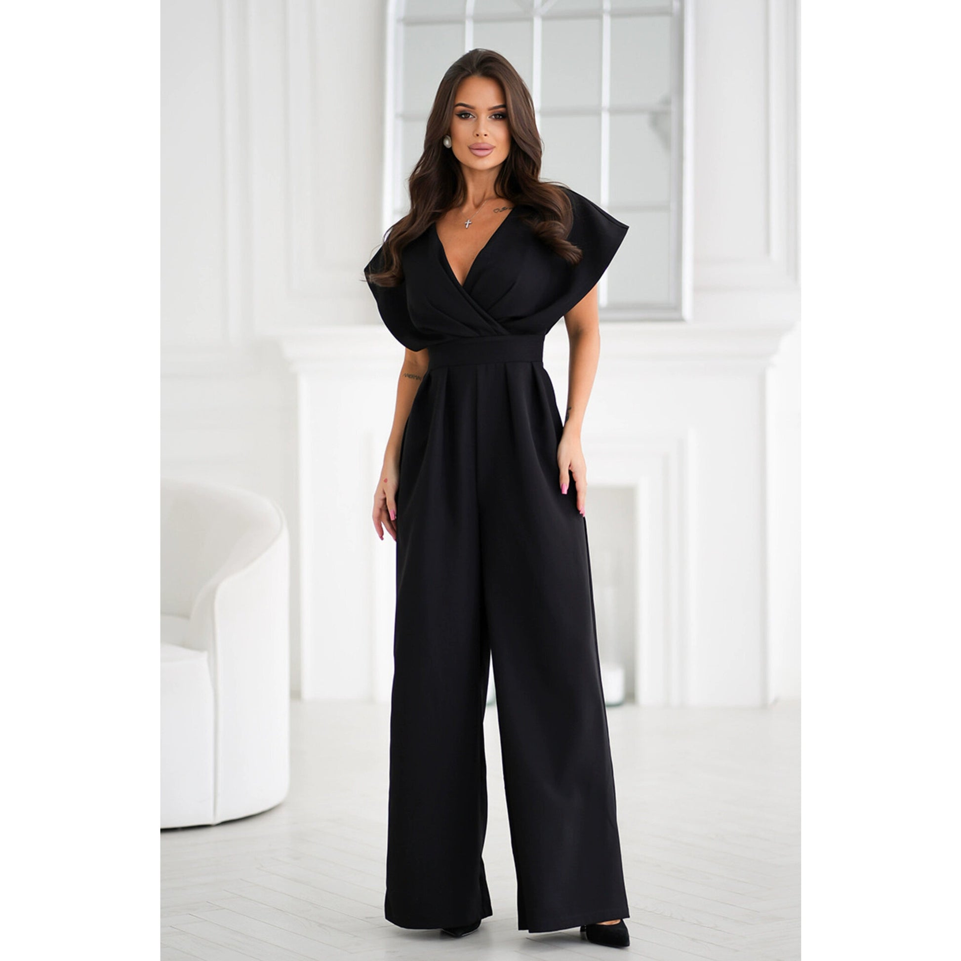 Breezy Crinkled Surplice Neckline/Wide Leg Jumpsuit/Fashion Style/Hot Sale New Elegant Slim/Looking Print V-neck Strap Dress.