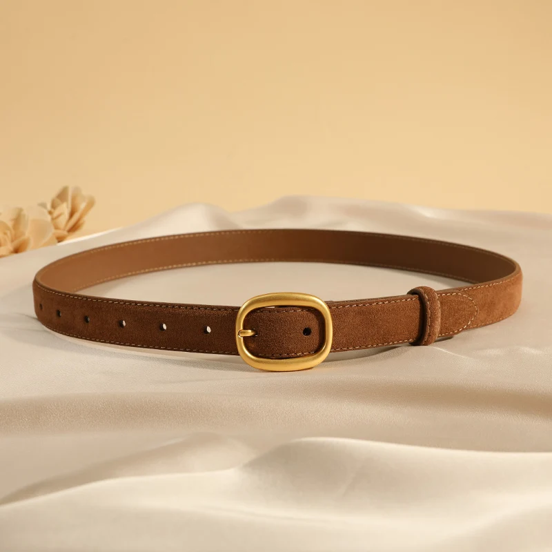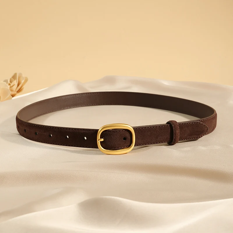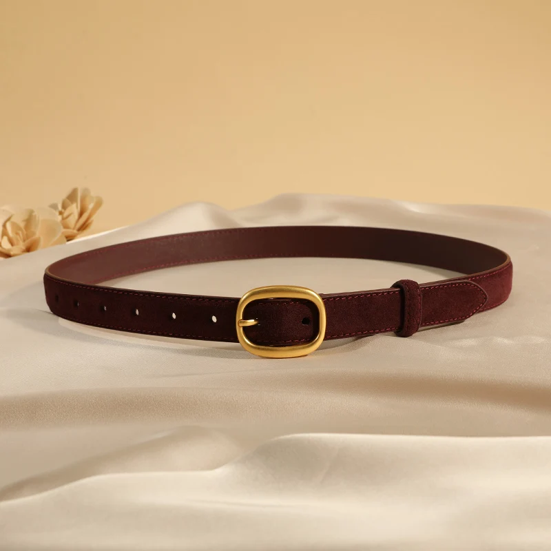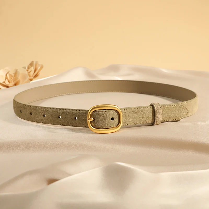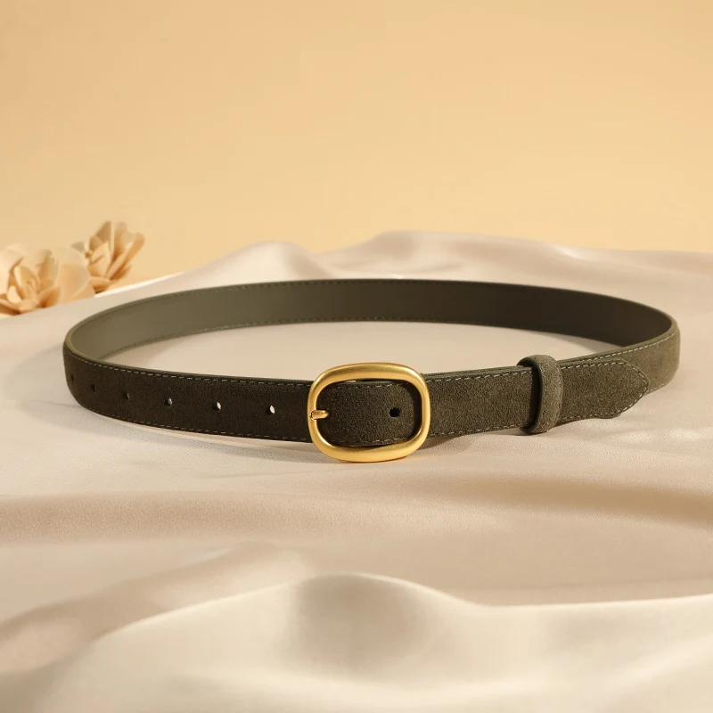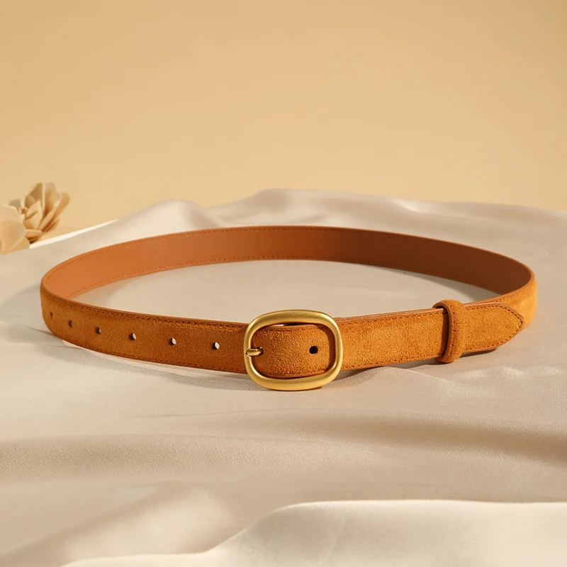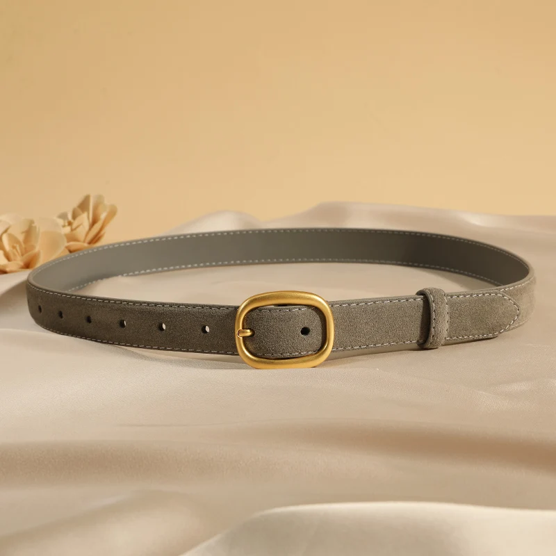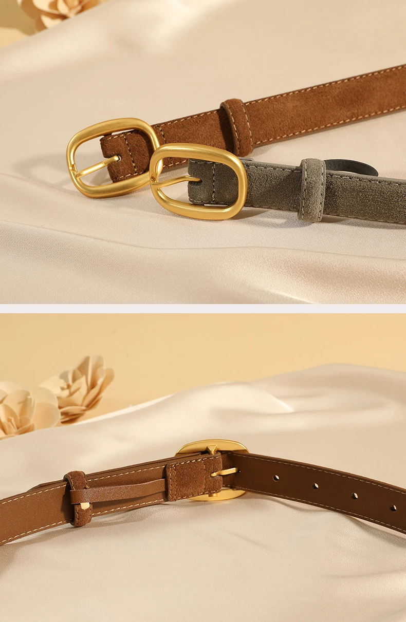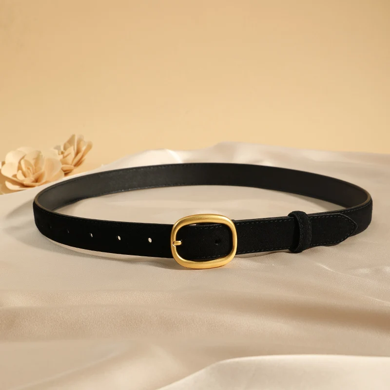 Title: Fashion Women's Suede Leather Belt Skinny Slim Waistband with Gold Buckle black Gray Casual Accessory for Jeans Pants & Dress