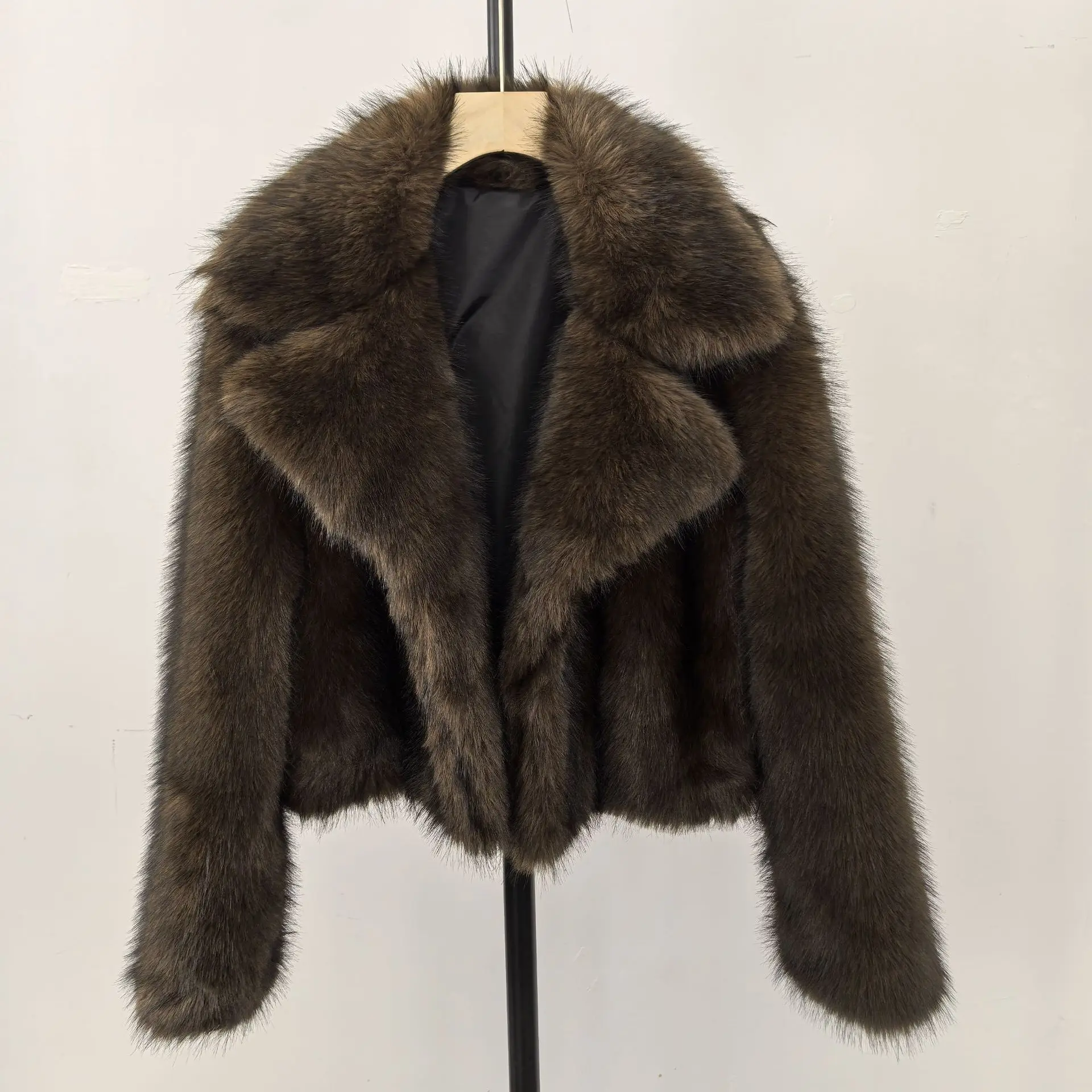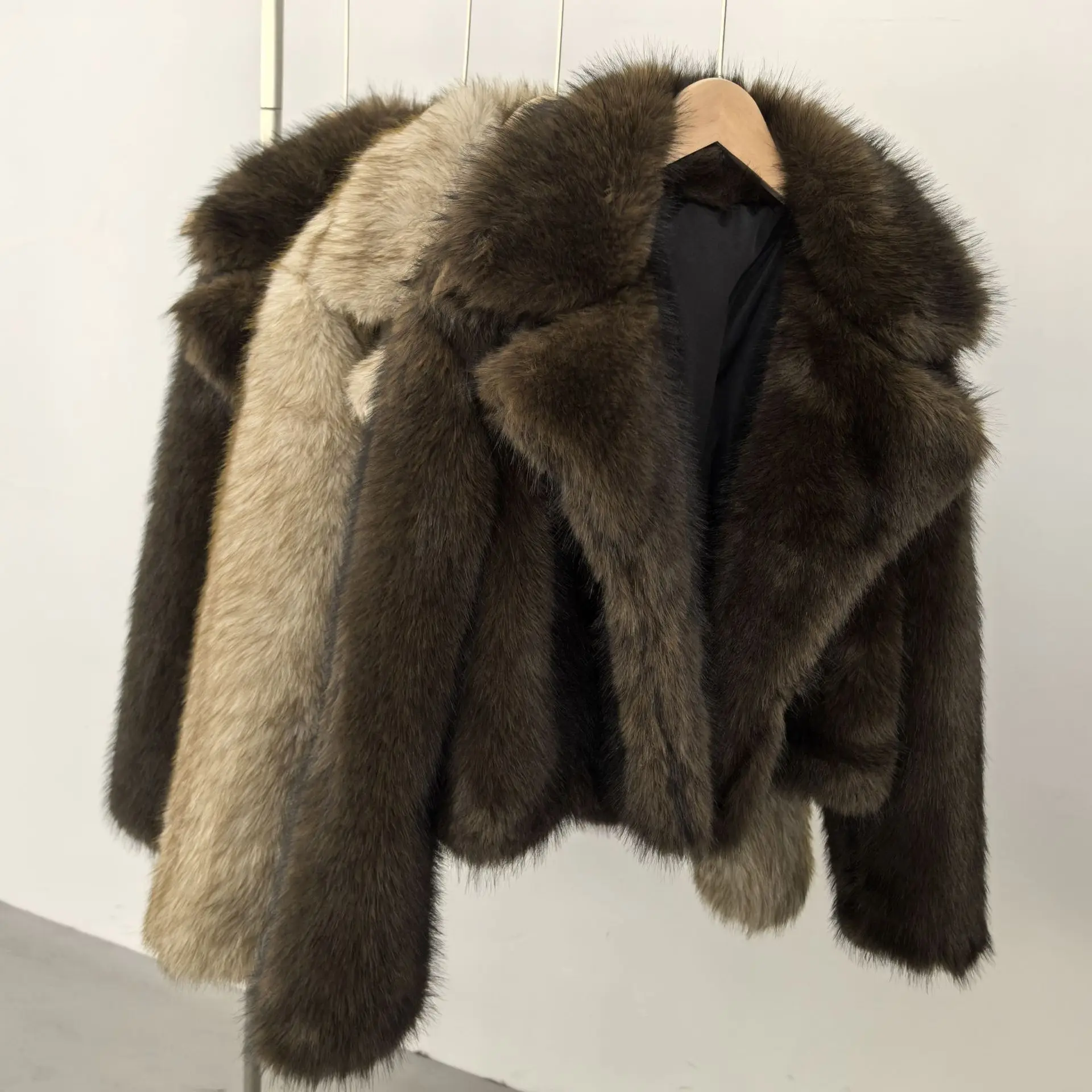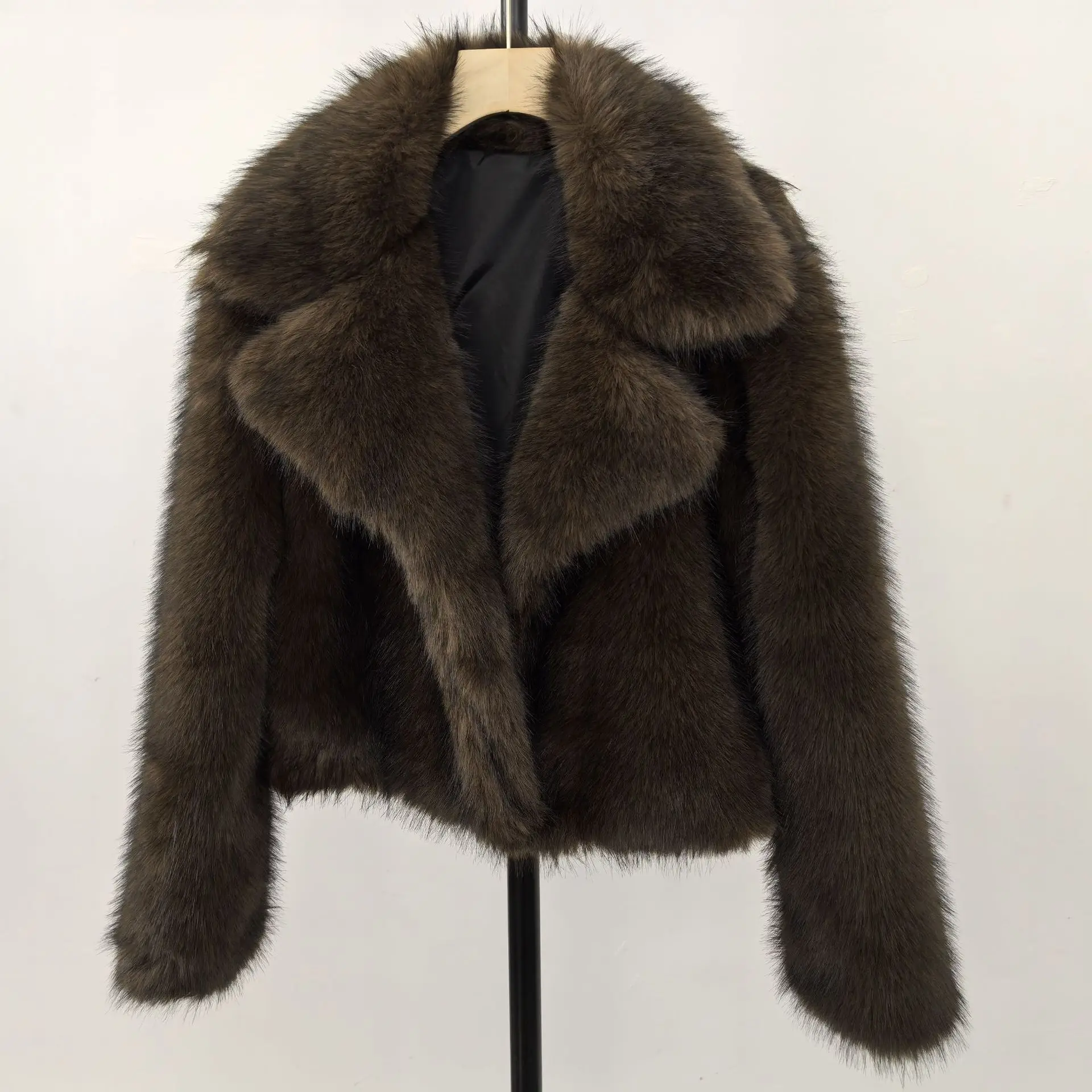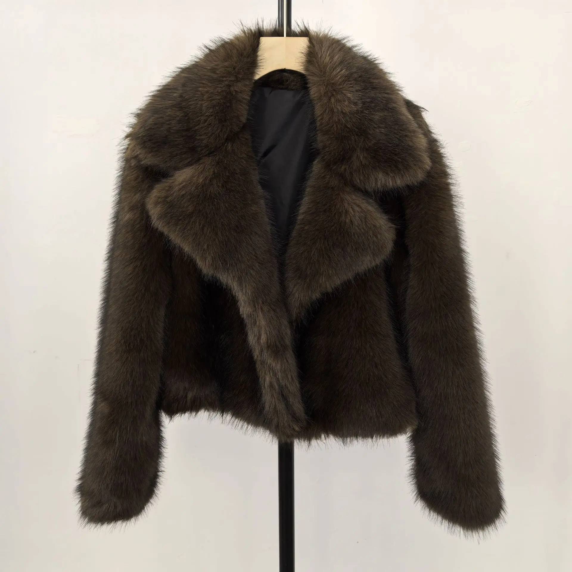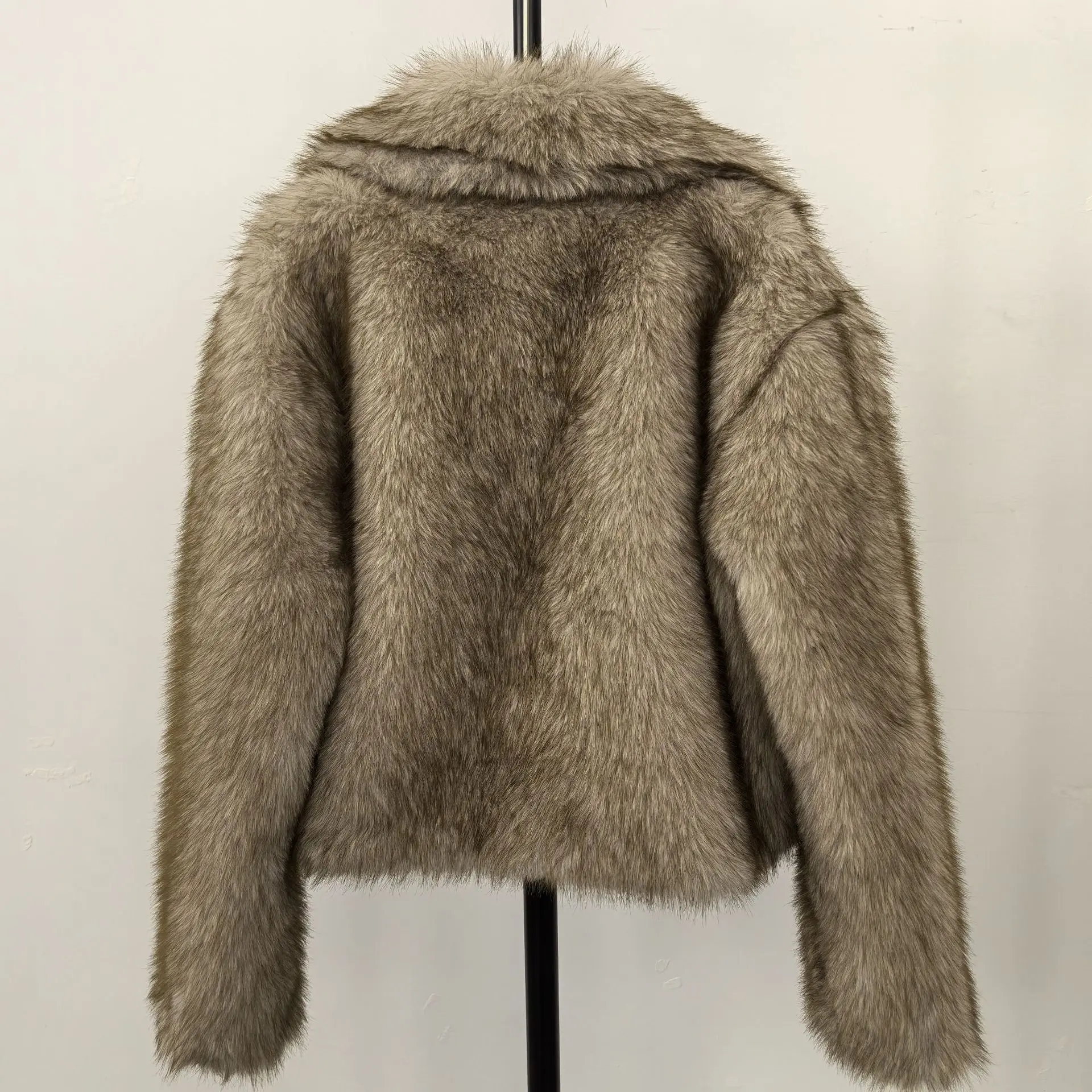 Faux Fox Fur Jacket/Autumn Winter Coat’s/Warm Luxury Fur Long Sleeve Artificial Fur Overcoat.