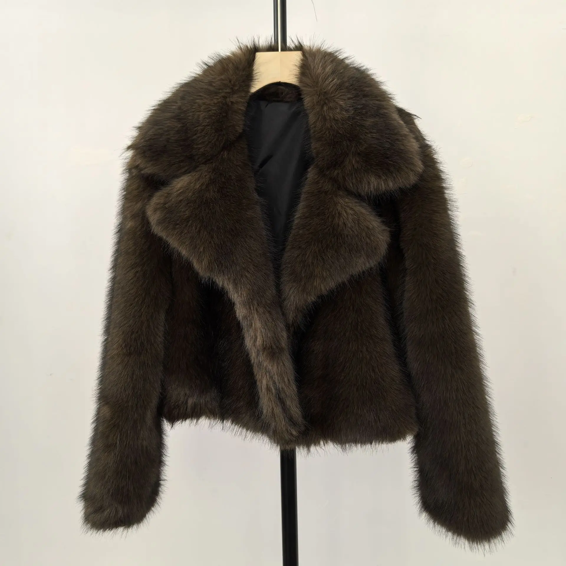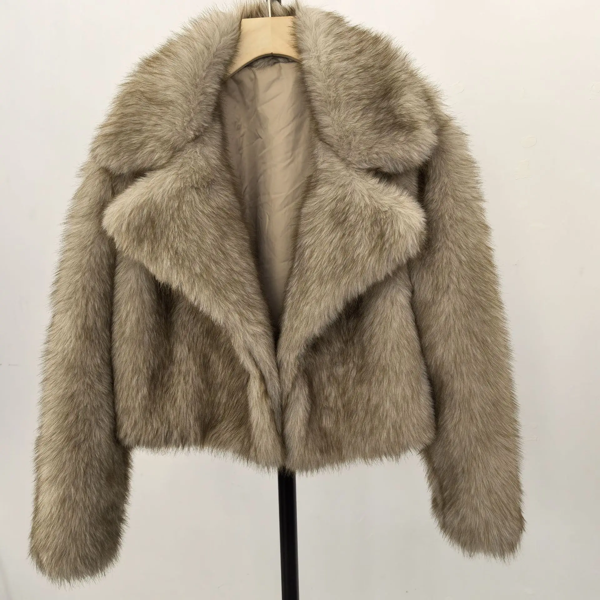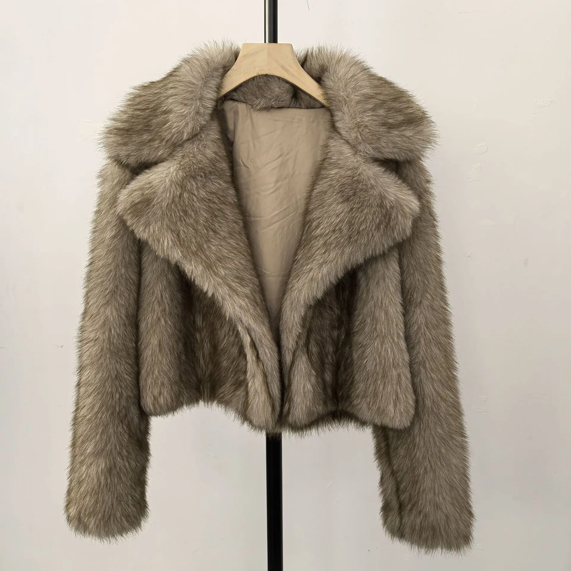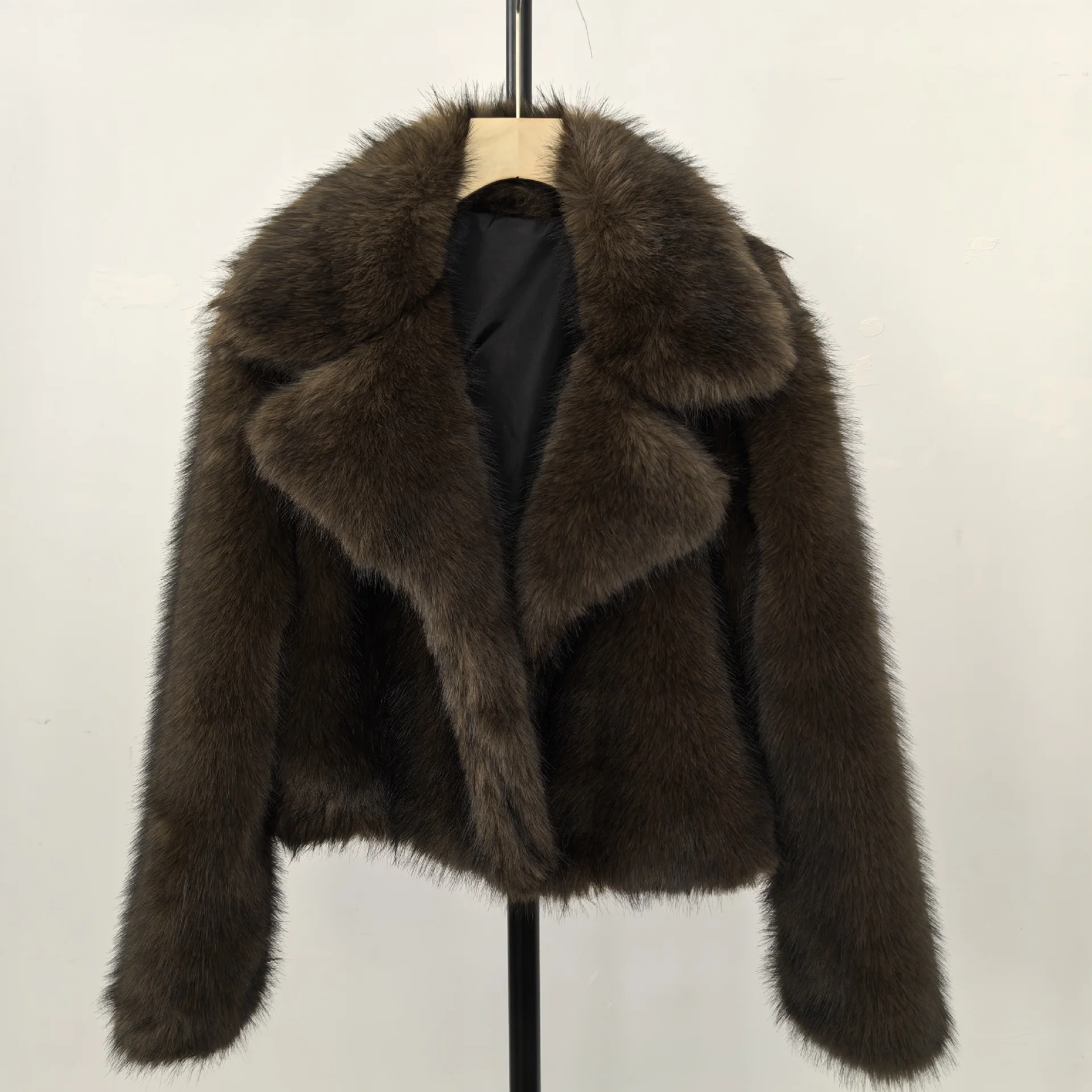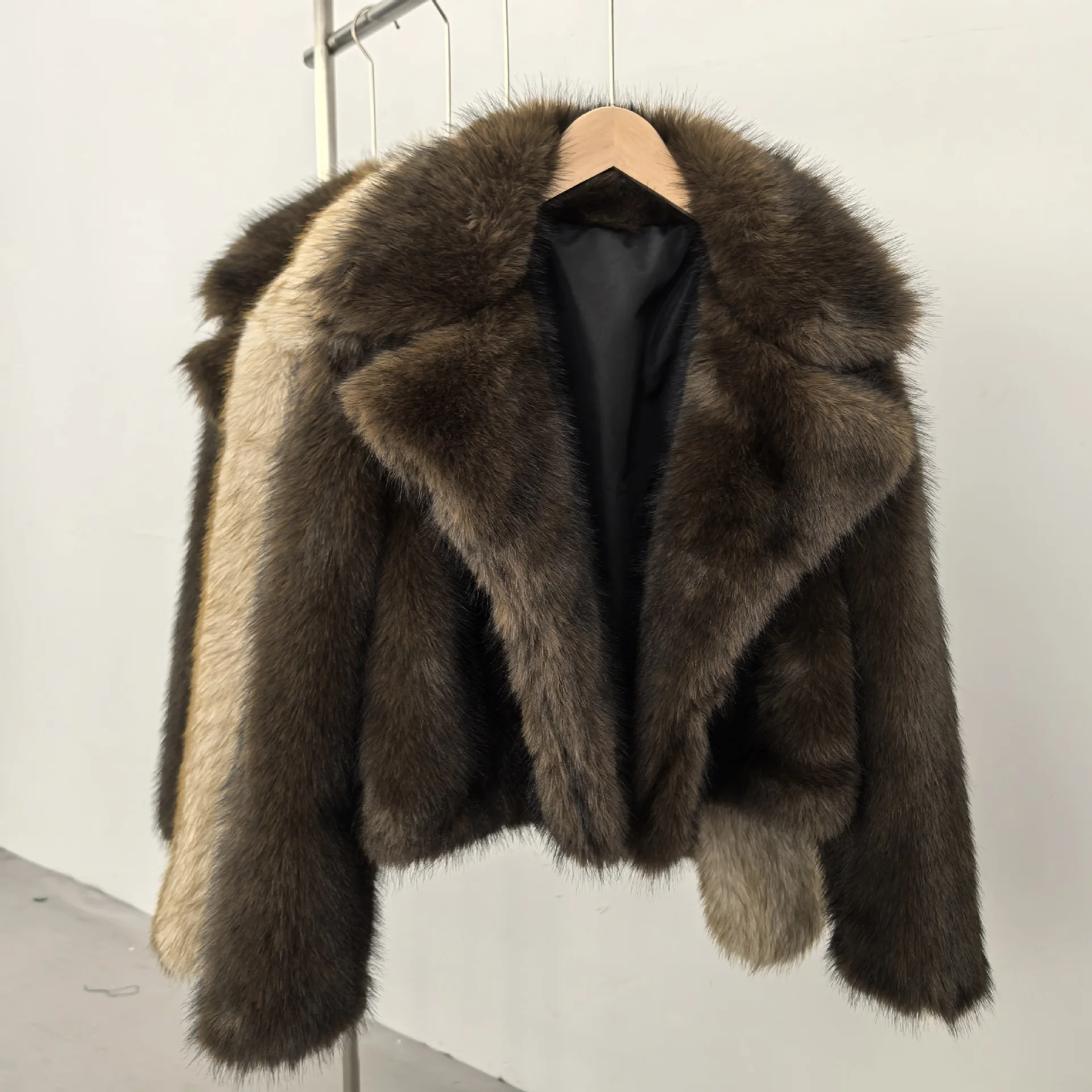 Faux Fox Fur Jacket/Autumn Winter Coat’s/Warm Luxury Fur Long Sleeve Artificial Fur Overcoat.