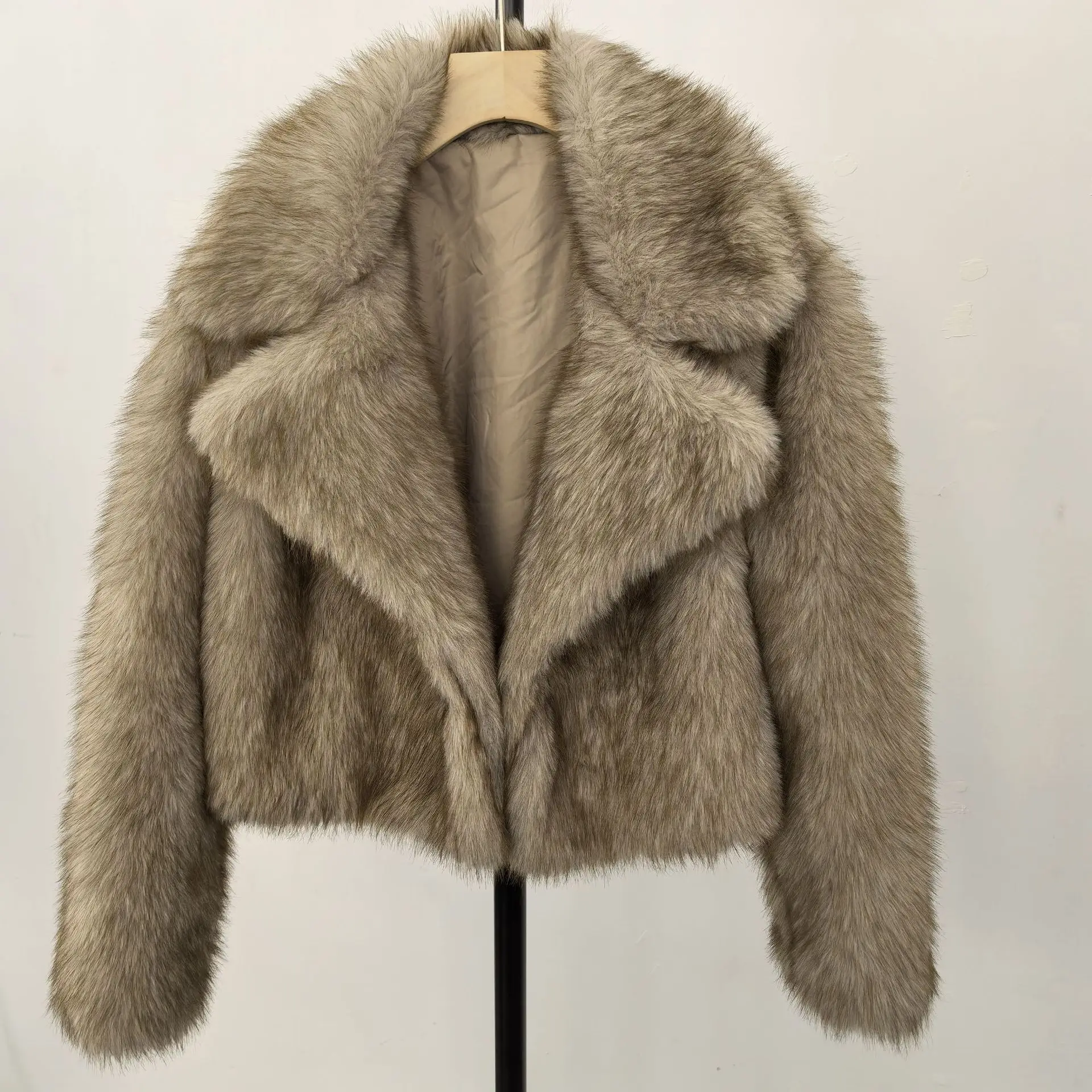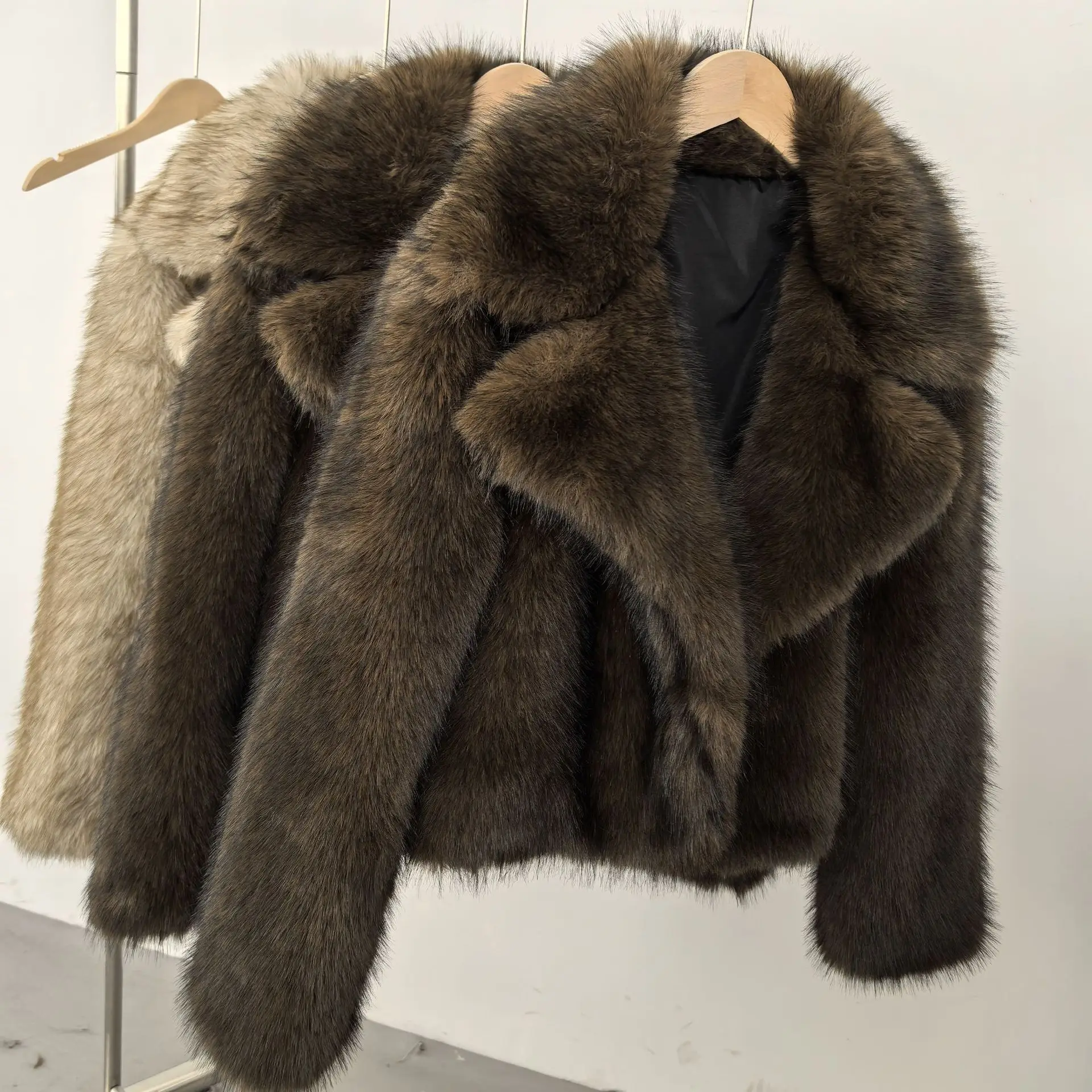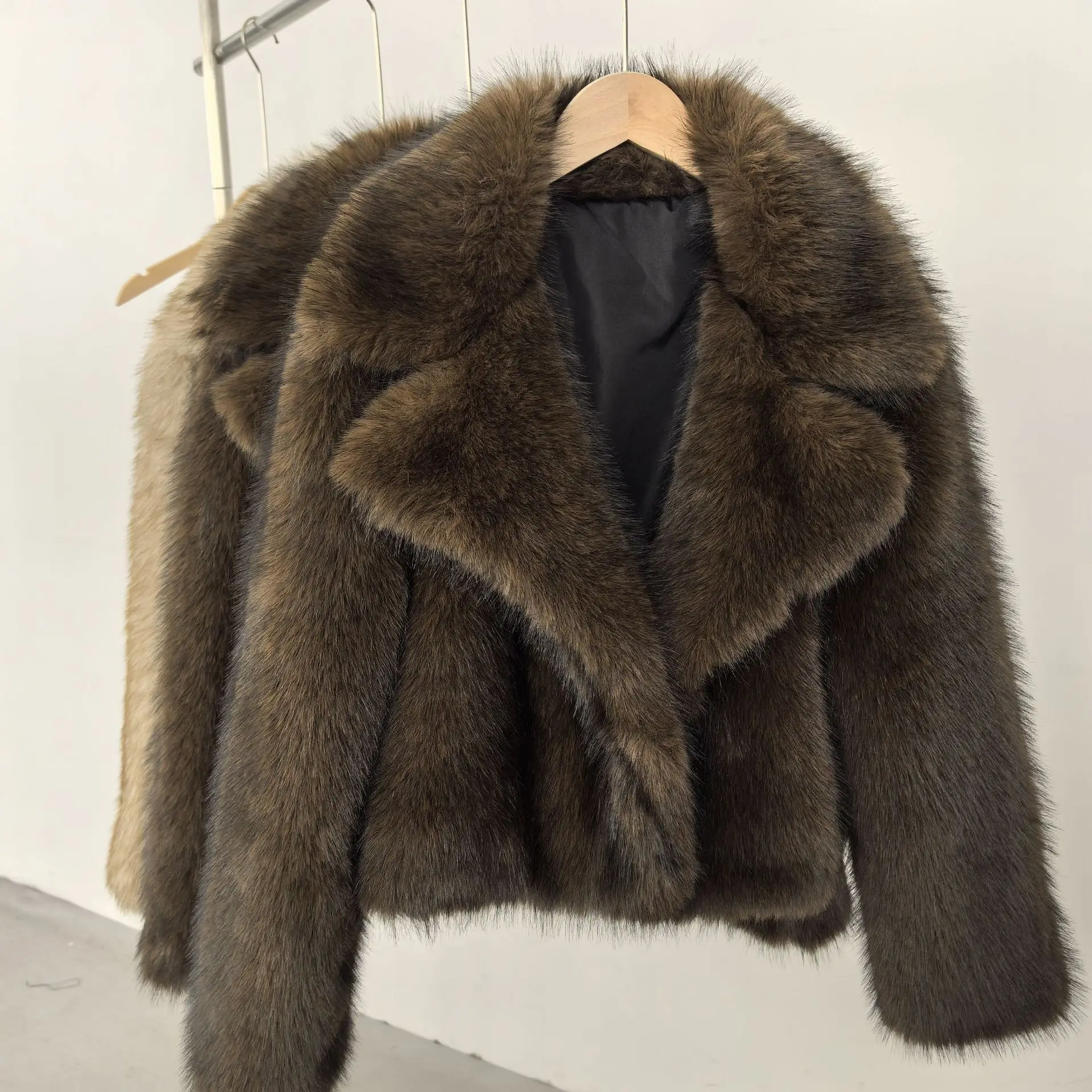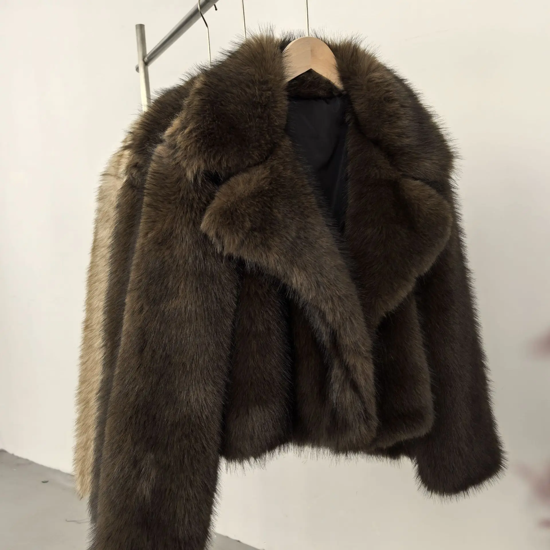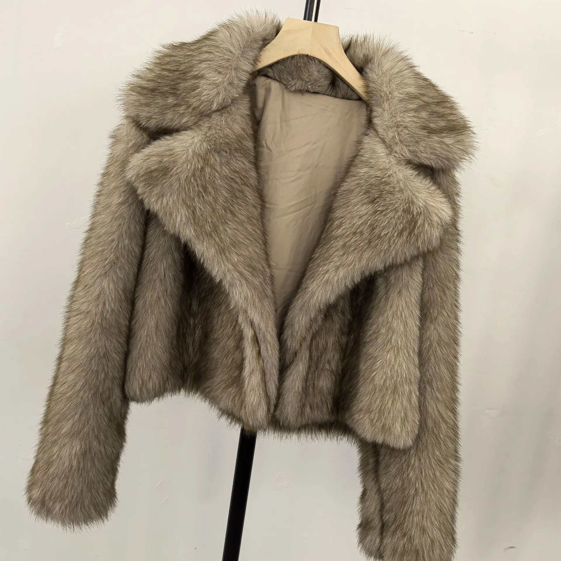Faux Fox Fur Jacket/Autumn Winter Coat’s/Warm Luxury Fur Long Sleeve Artificial Fur Overcoat.