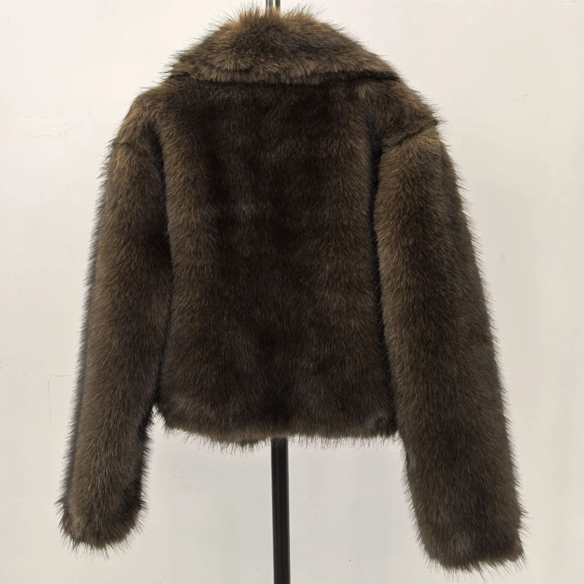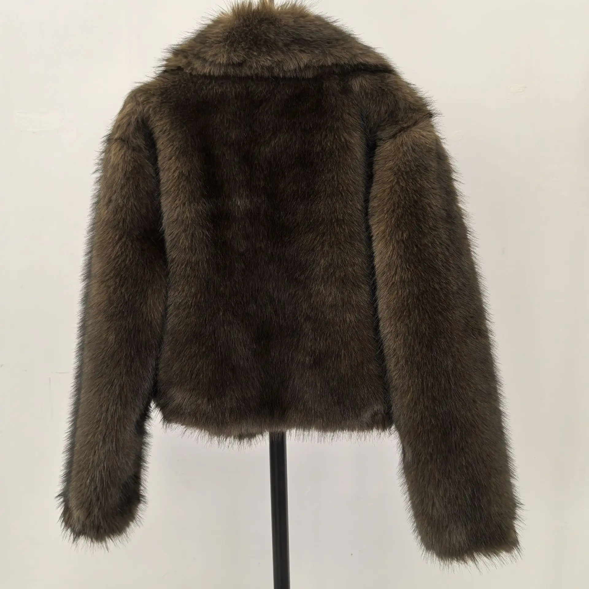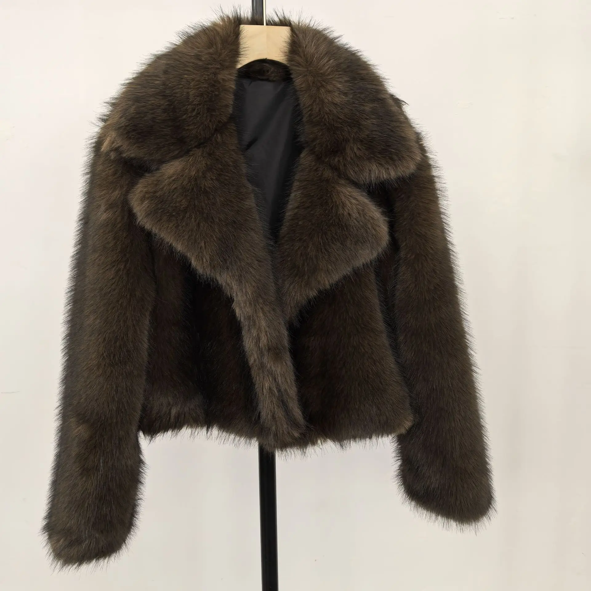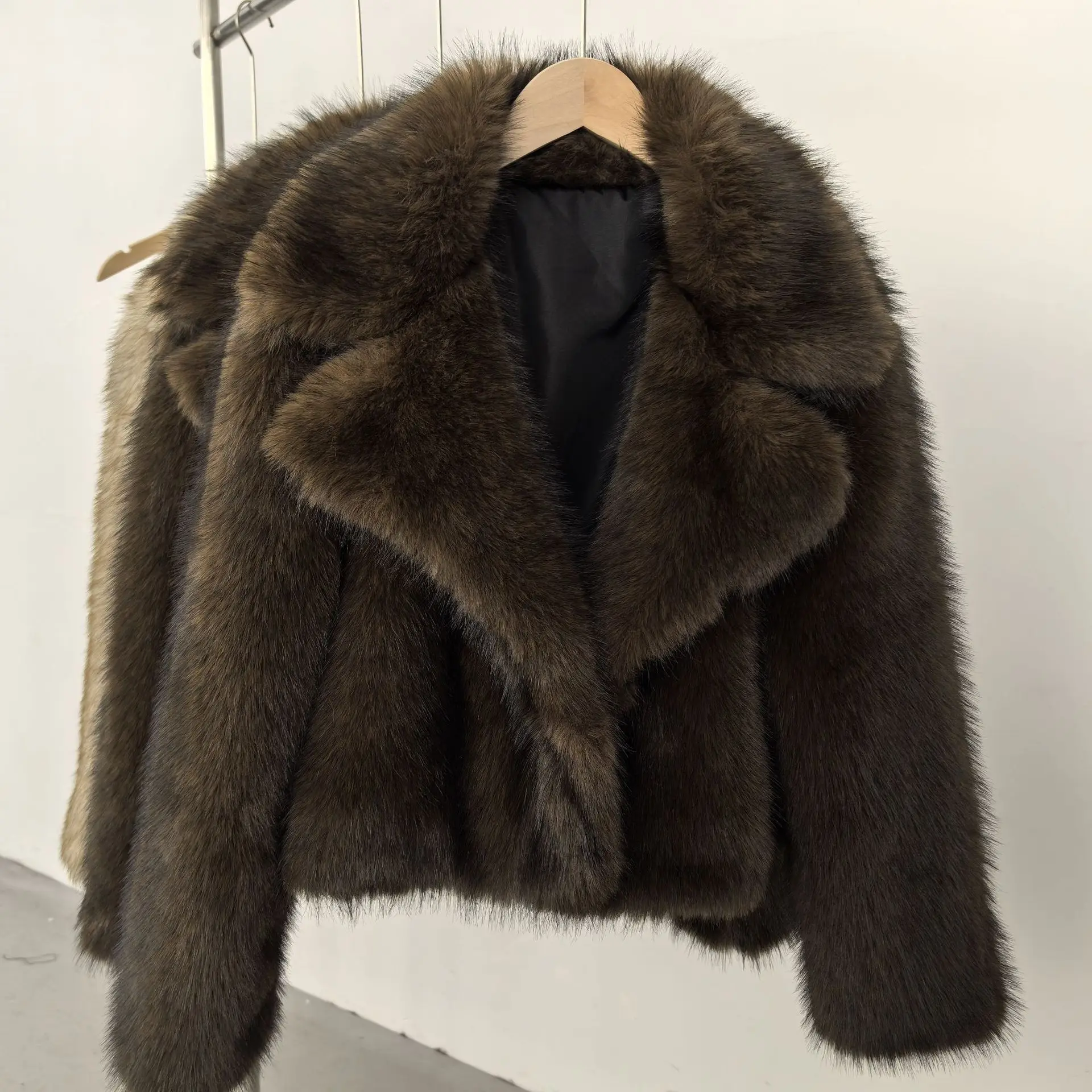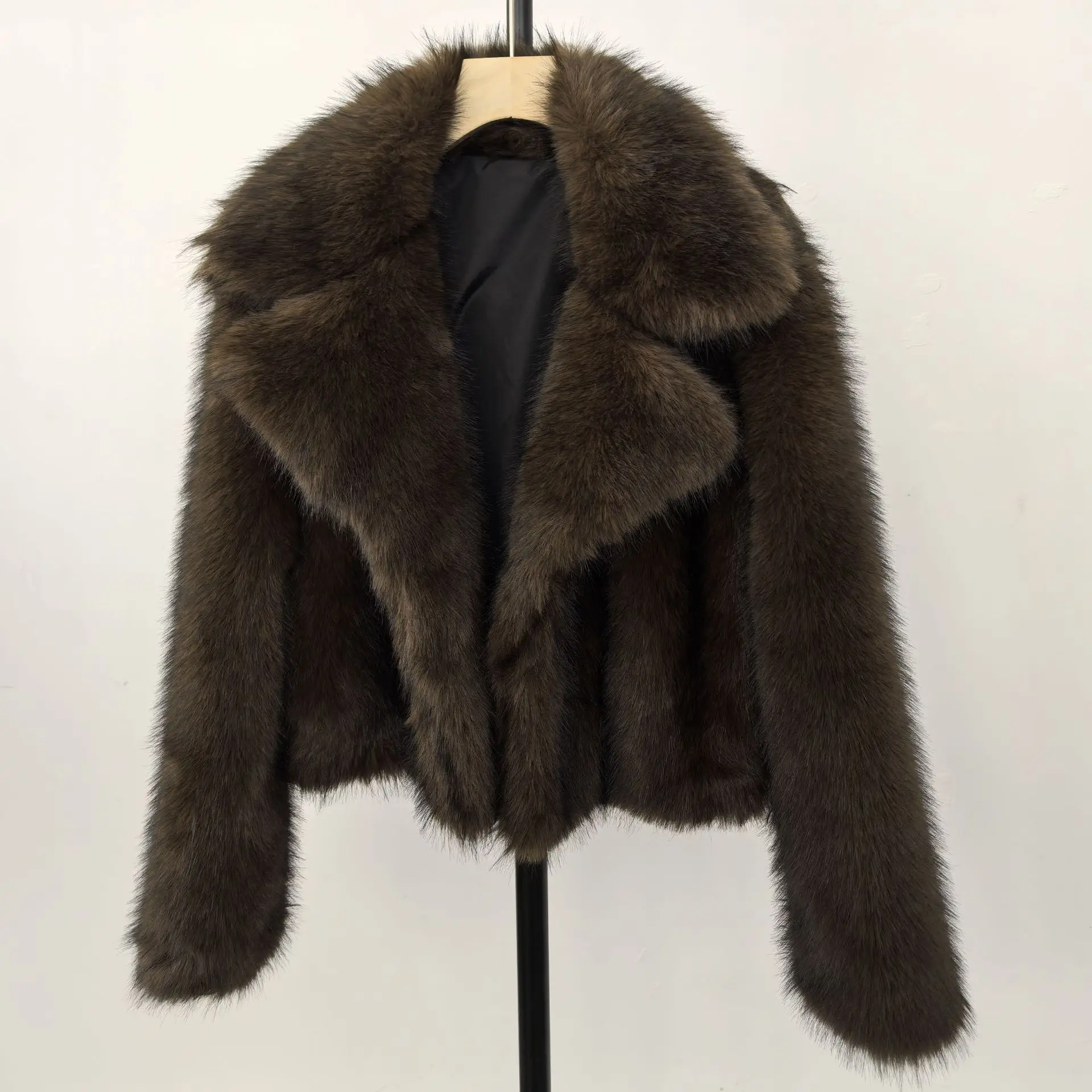 Faux Fox Fur Jacket/Autumn Winter Coat’s/Warm Luxury Fur Long Sleeve Artificial Fur Overcoat.