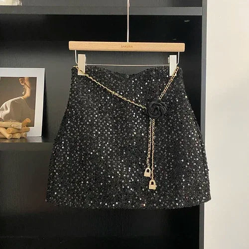 Seasonal High Waist A-line Floral Chain Lace-Up Skirts/Skirts with Shorts/Stretched Above Knee.