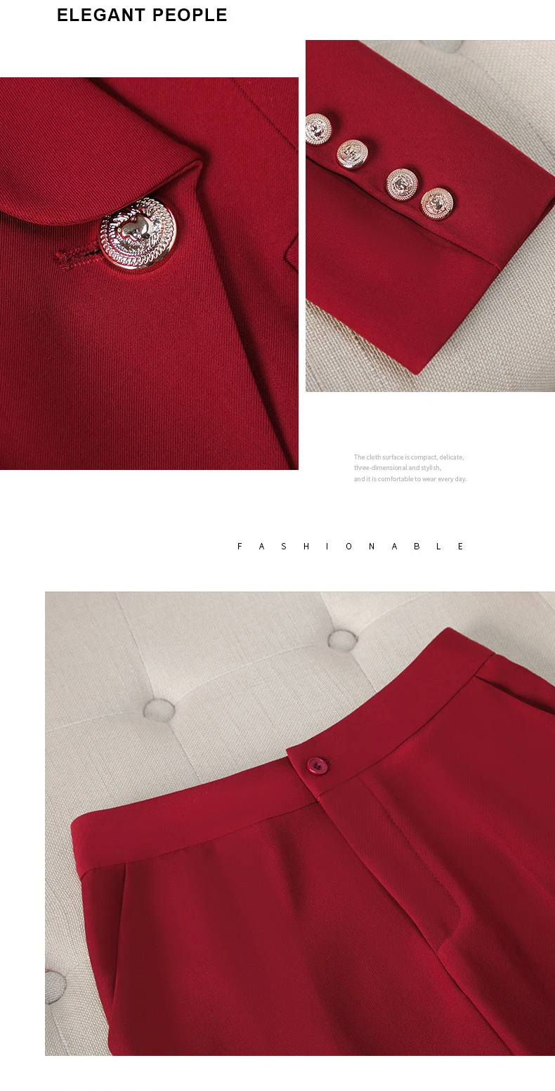 High Quality Turn Down Collar Suit/Two Piece Double Breasted Blazer/Straight Zipper Trousers Women Outfit.