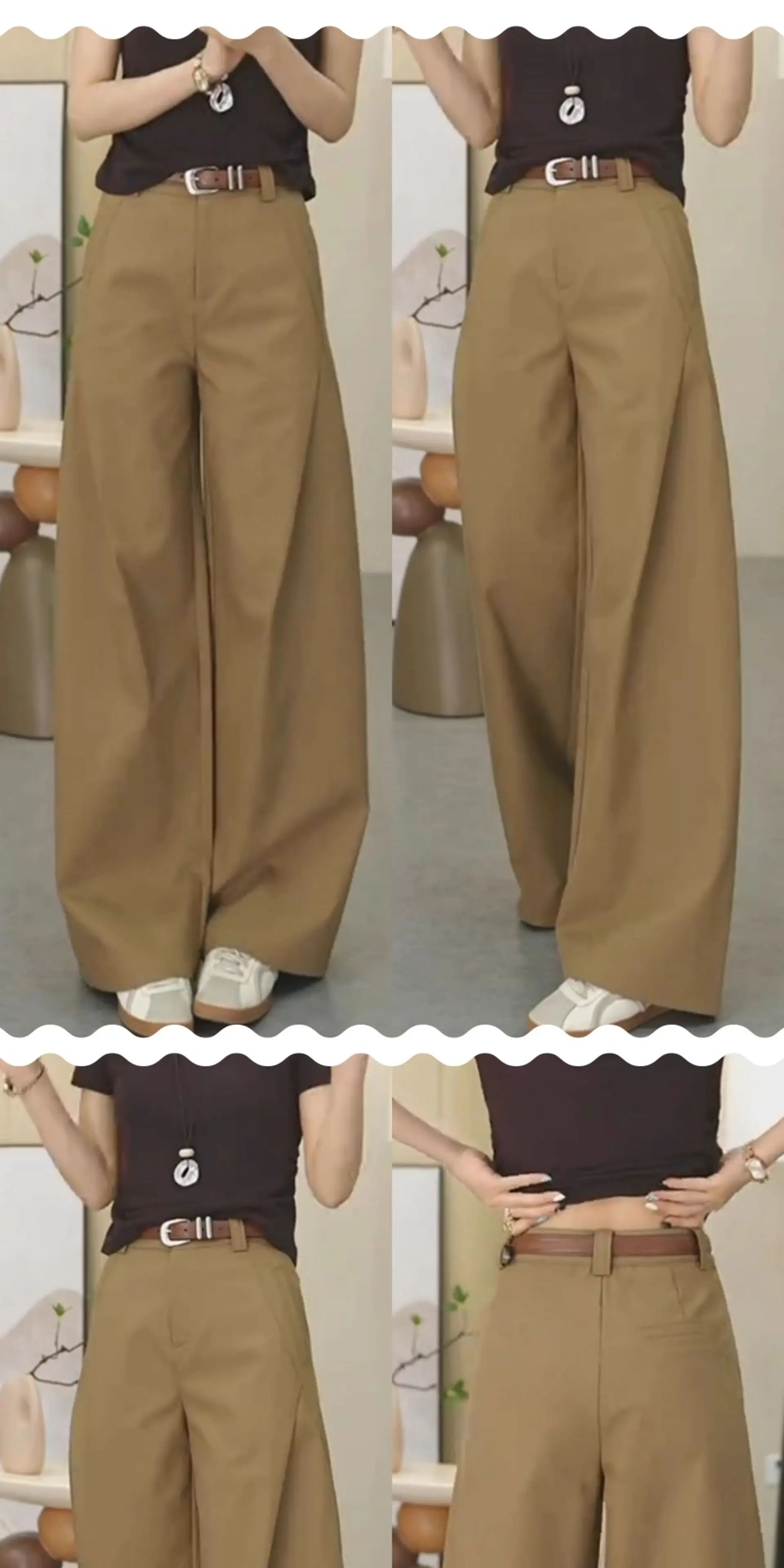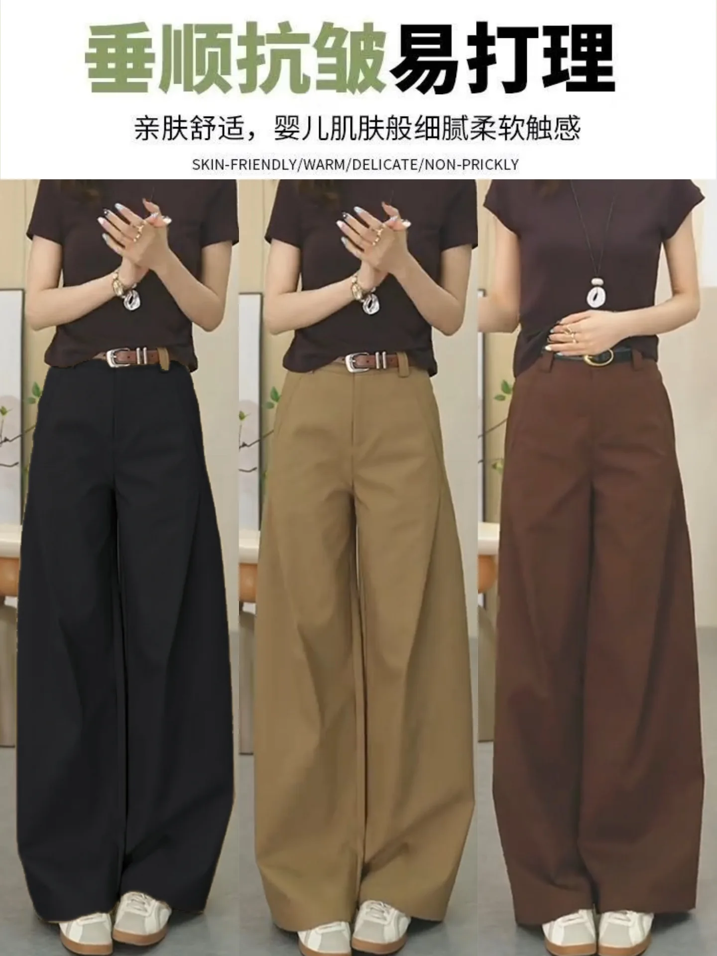 Stylish Khaki Cargo Wide Leg Pant’s/Women's Autumn New Style/Loose Slimming Straight Leg Trouser’s.