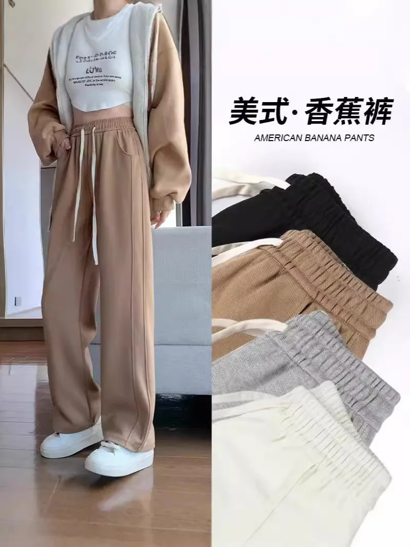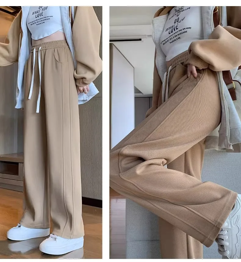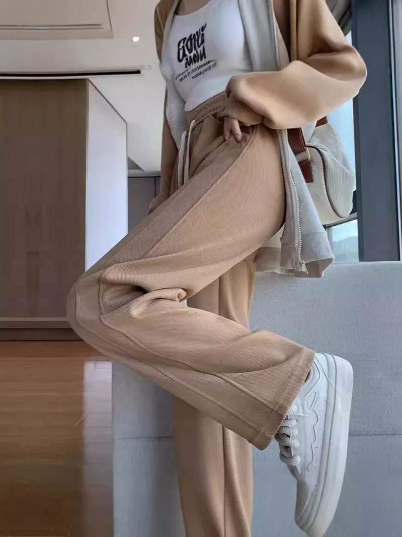 Solid Narrow Wide-leg Pant’s/High Waist Drooping Slim Casual Straight American Sport’s.