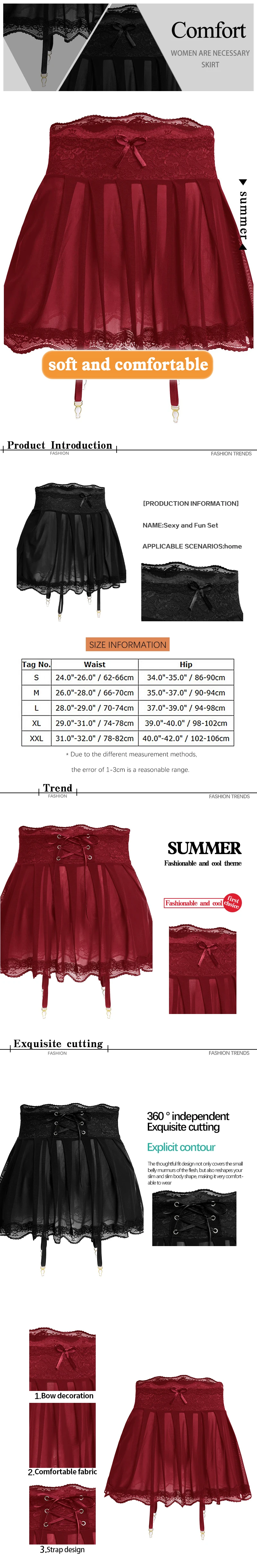 Sexy Transparent Lace Mini Skirt/Women's Bow Decoration Chiffon Micro Skirt Lace Edge Sexy Women's Sleeping Skirt.