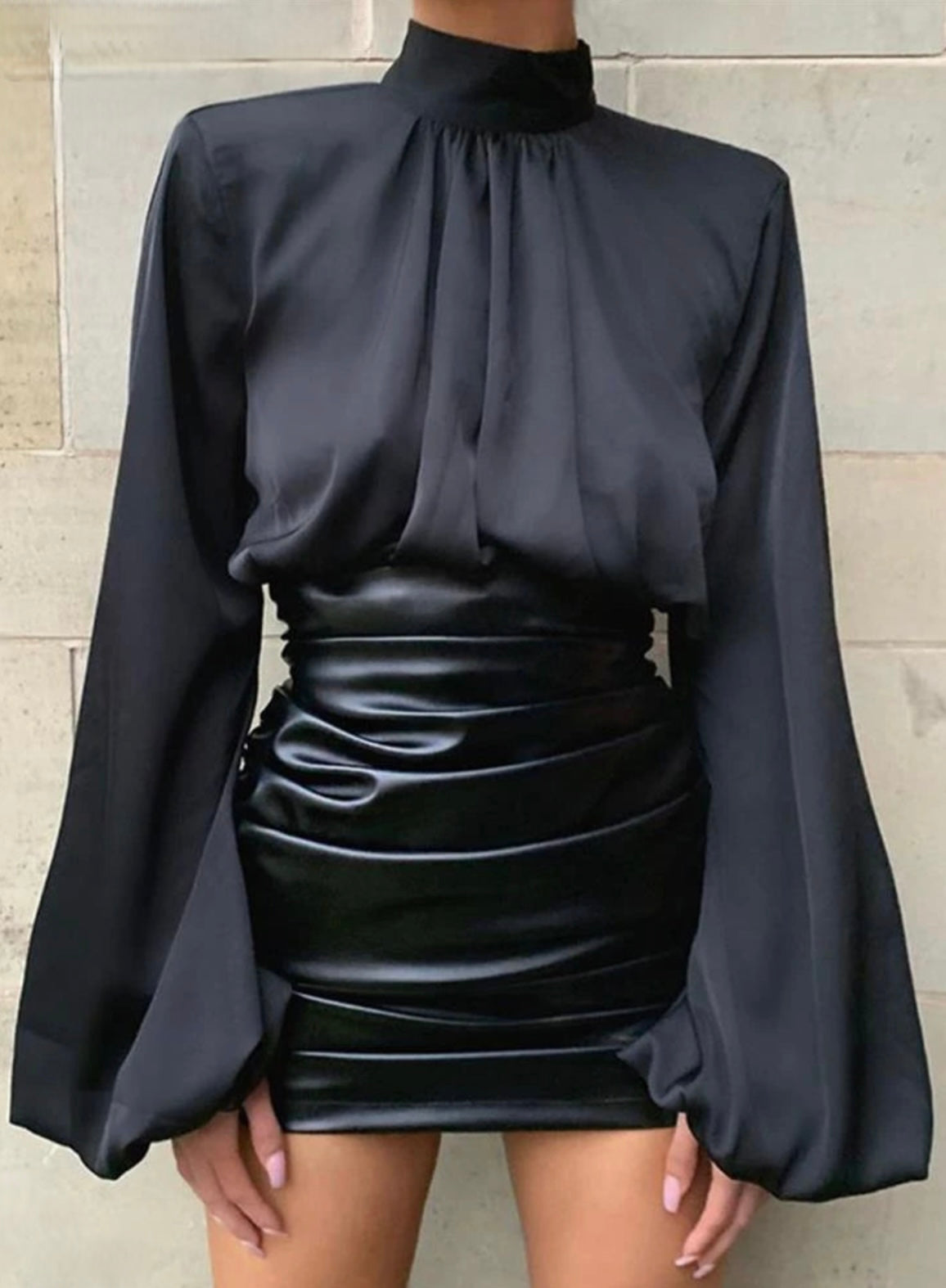 Shestyle White Satin Lantern Sleeve/Solid Shine Loose Sexy Short Crop Tops Women High Waist Work Shirt.