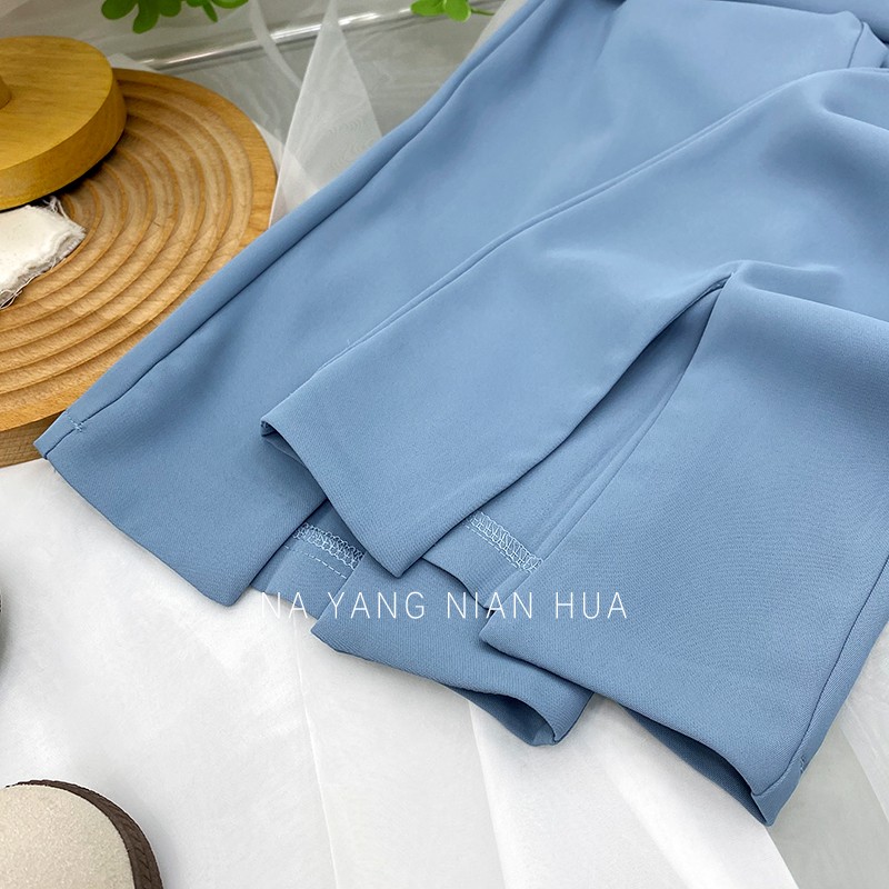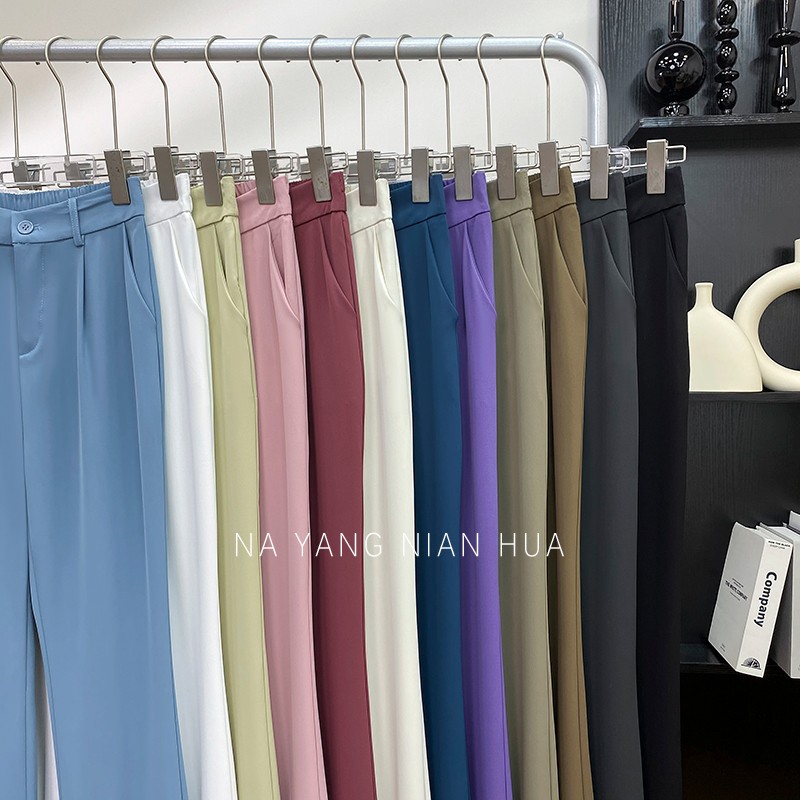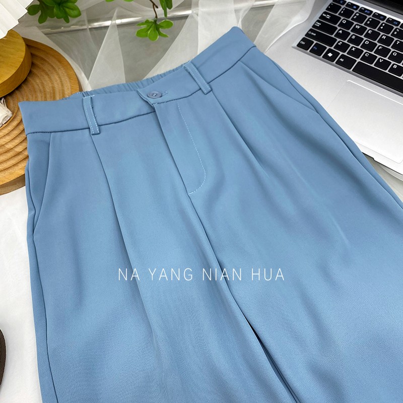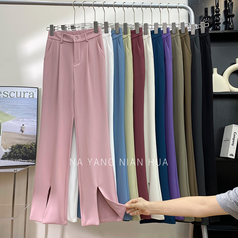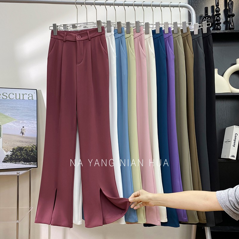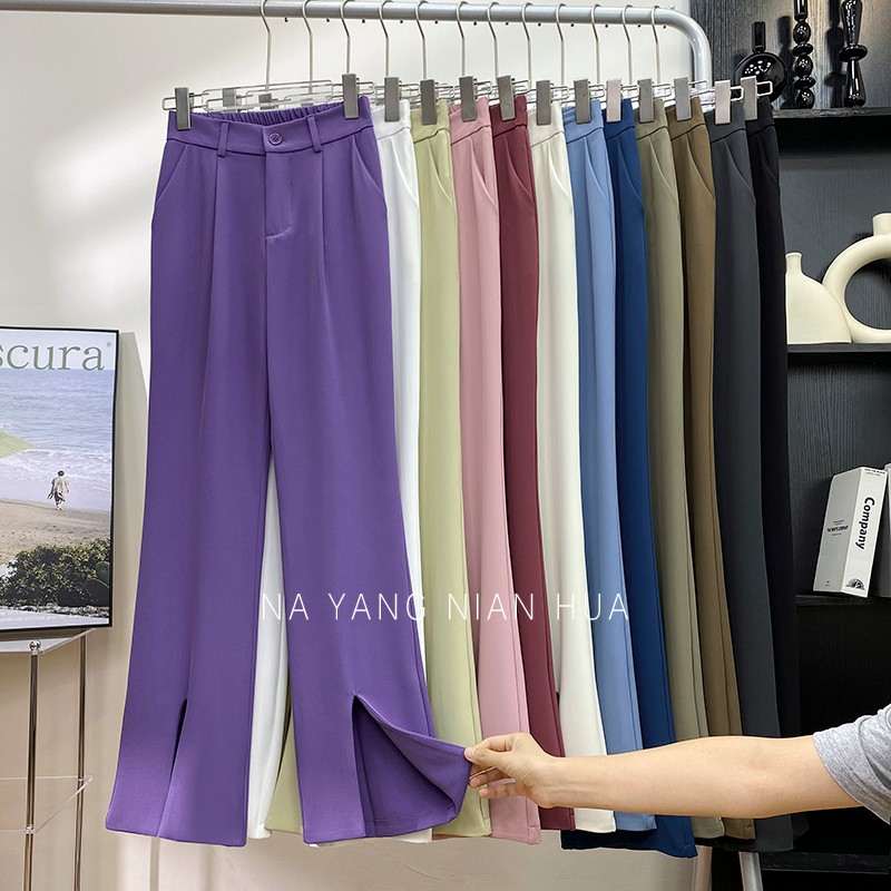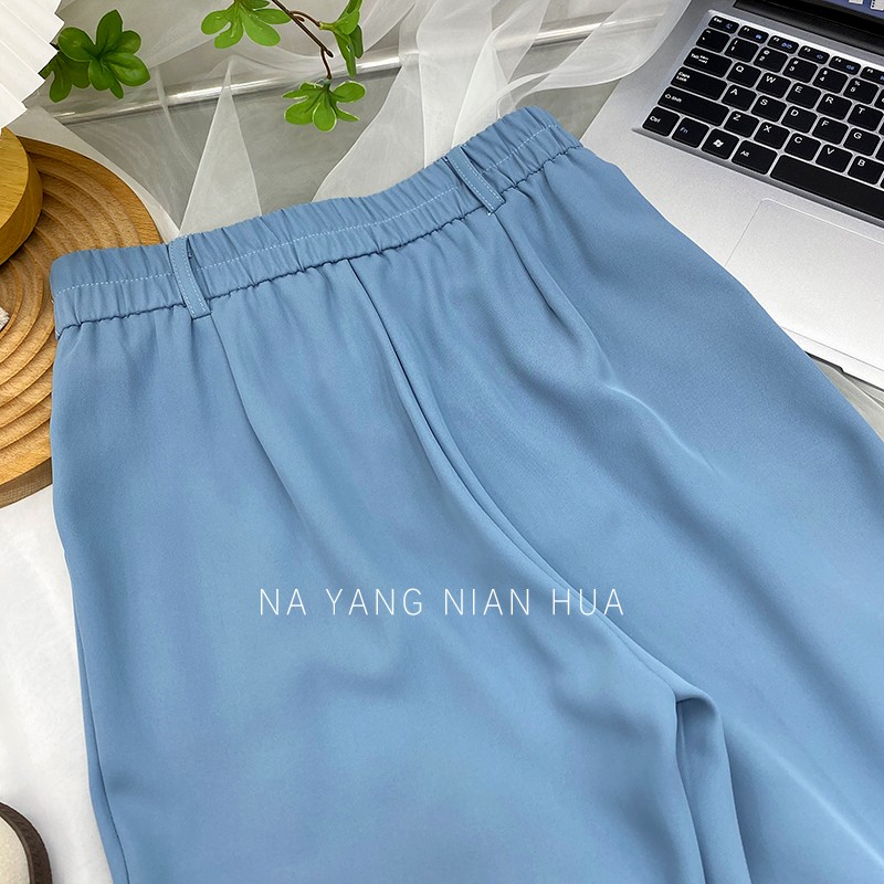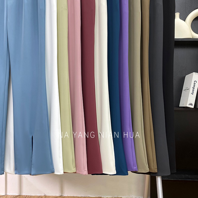 Fancy Asymmetric Slit Design/Solid Ice Silk Micro-Pull Loose Drooping Mop Casual Pant’s/High Waist Micro-lathe pants.