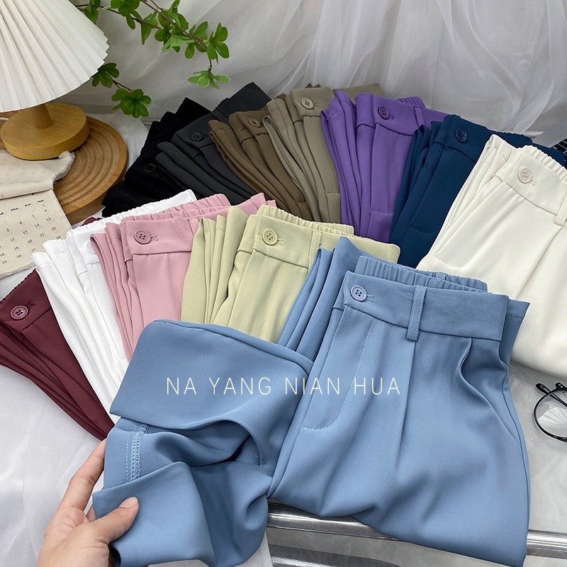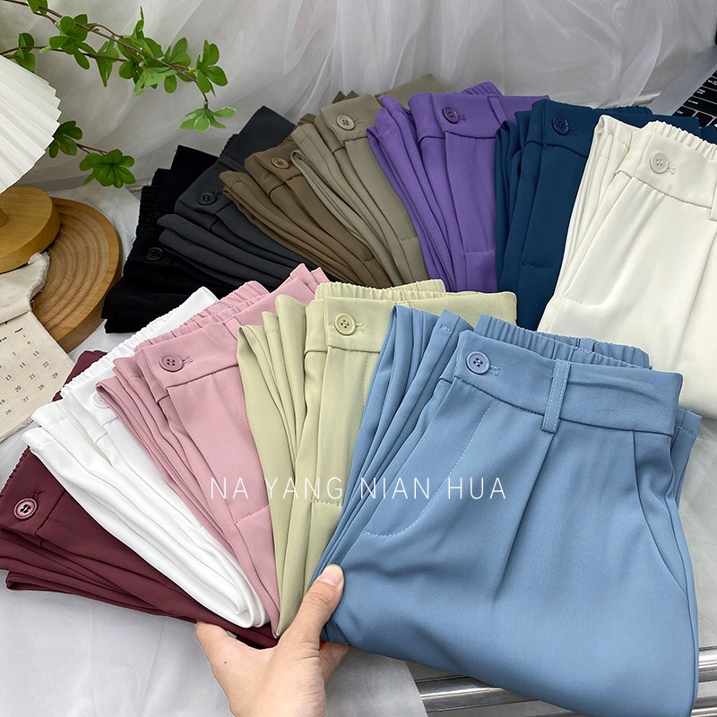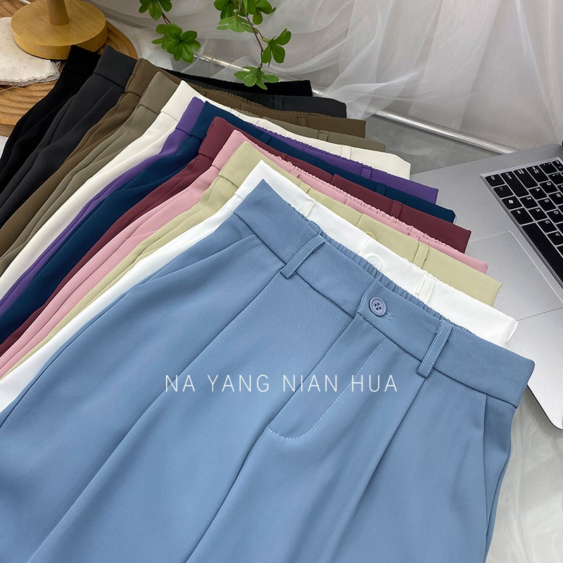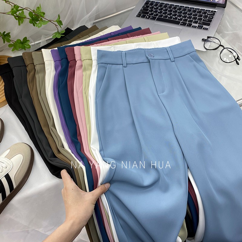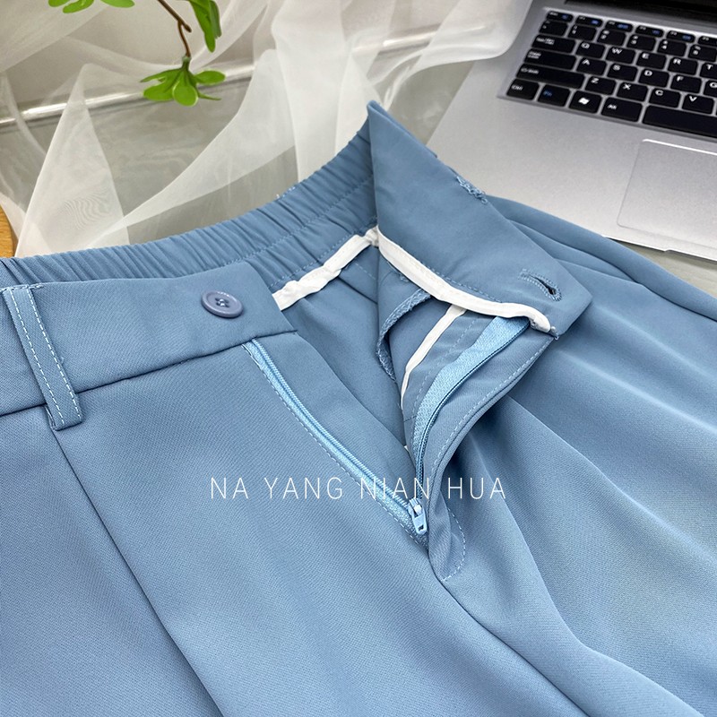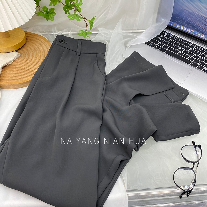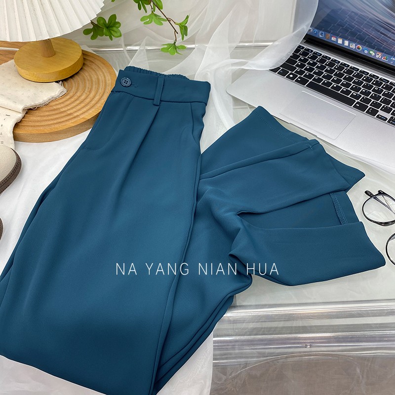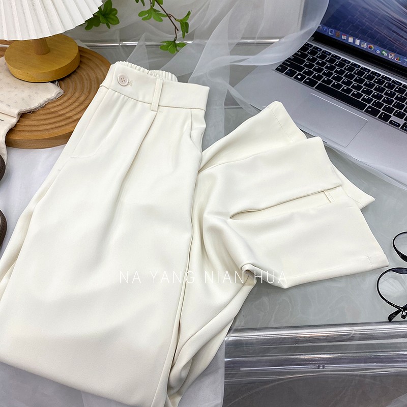 Fancy Asymmetric Slit Design/Solid Ice Silk Micro-Pull Loose Drooping Mop Casual Pant’s/High Waist Micro-lathe pants.