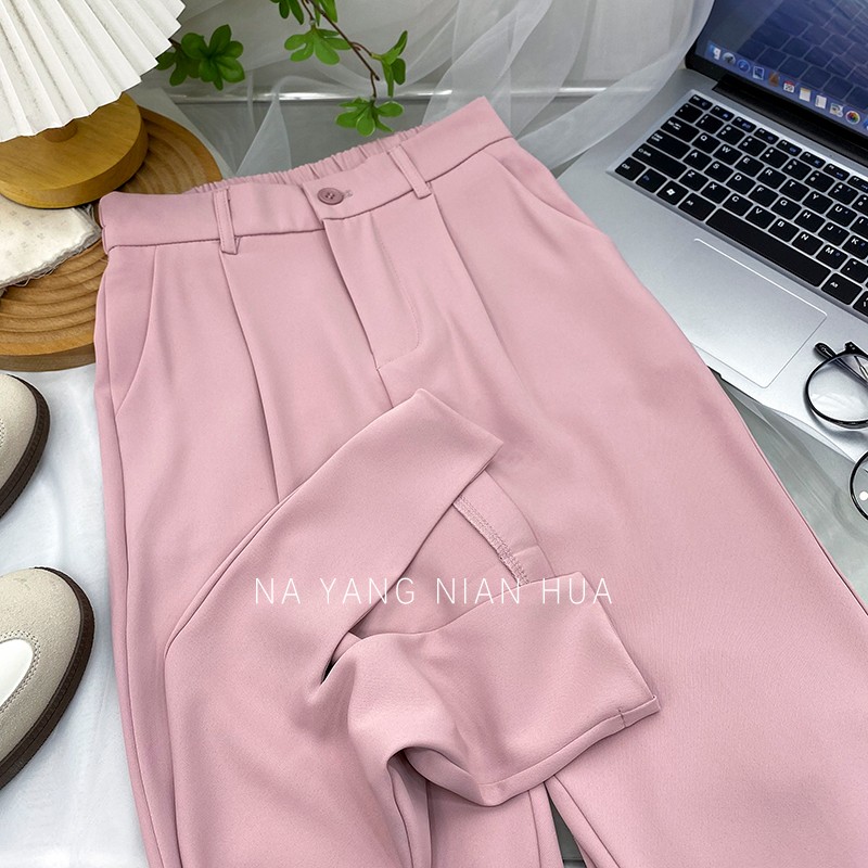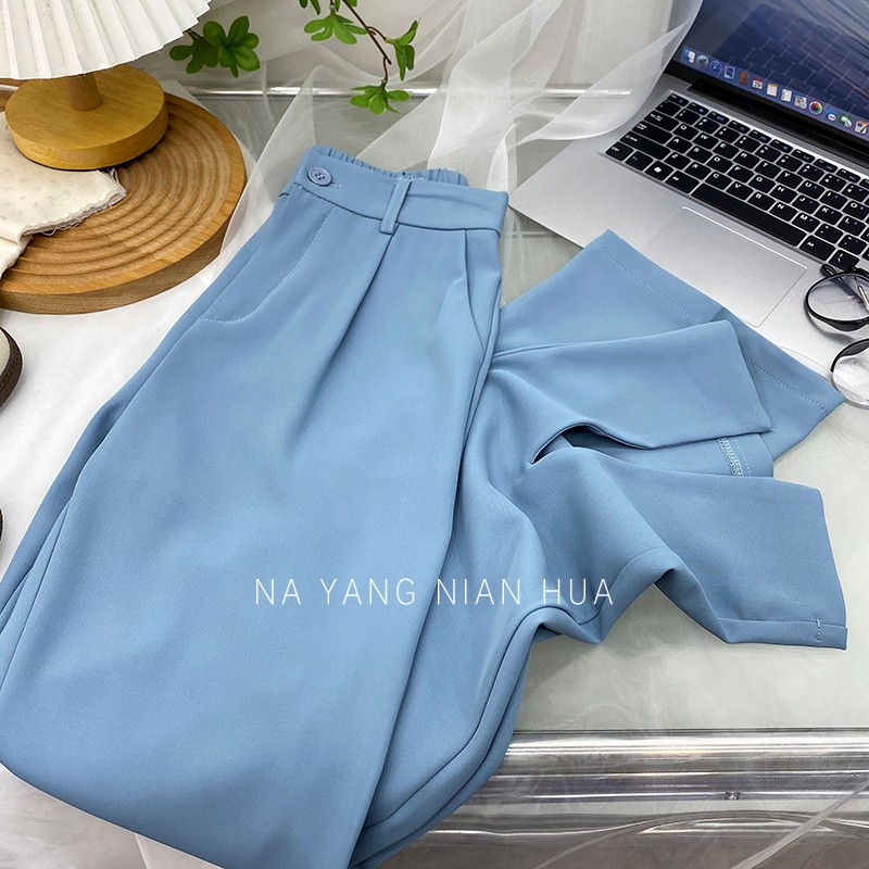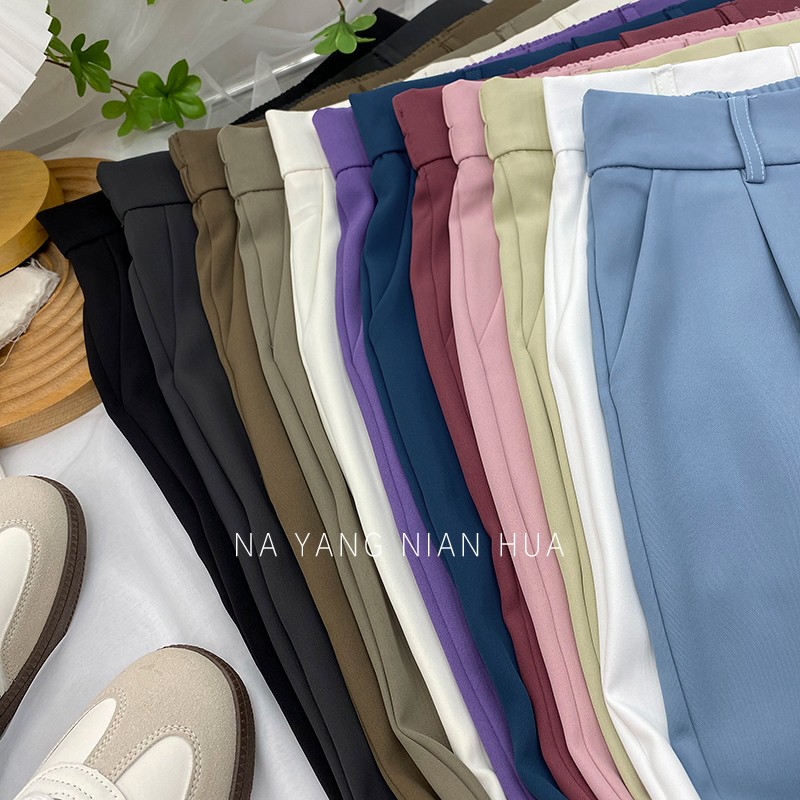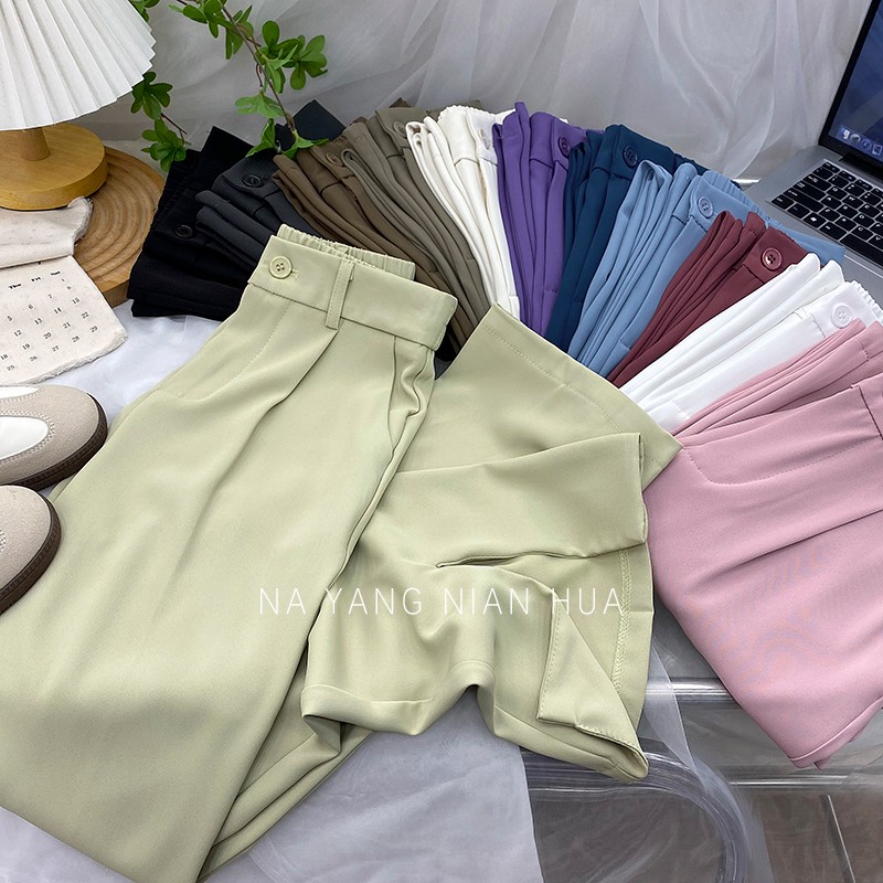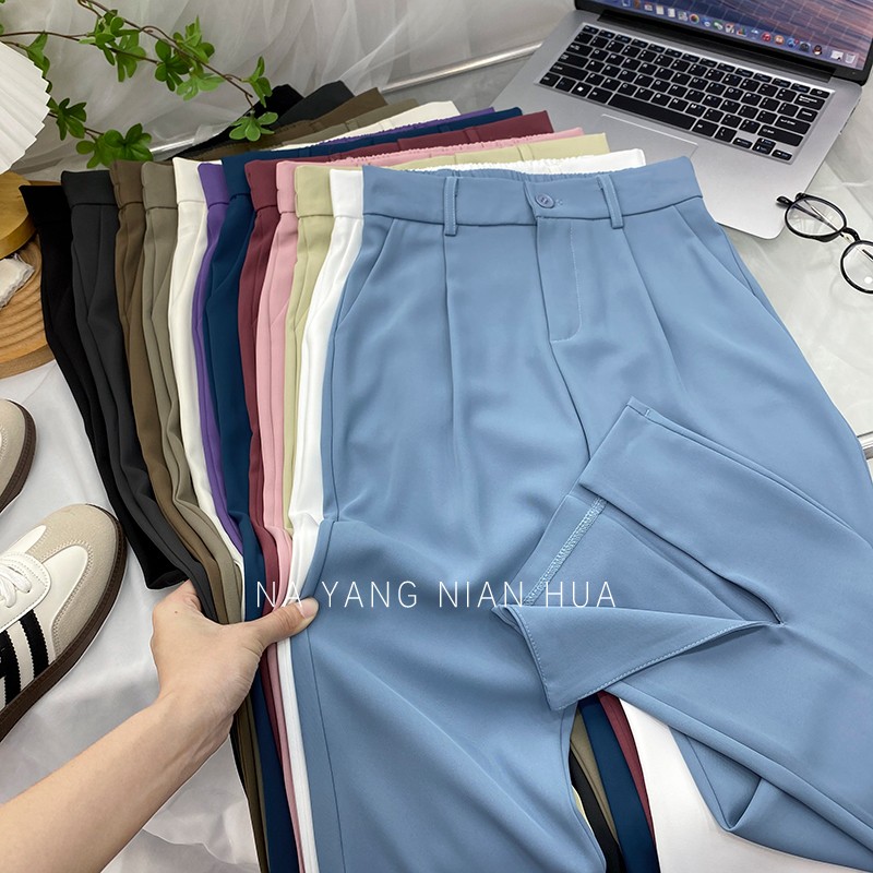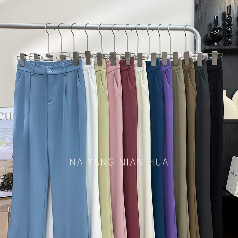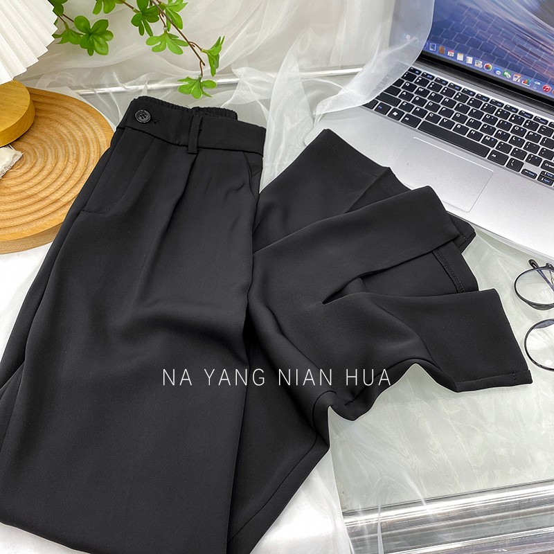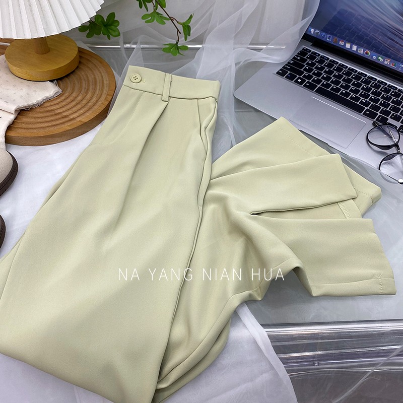 Fancy Asymmetric Slit Design/Solid Ice Silk Micro-Pull Loose Drooping Mop Casual Pant’s/High Waist Micro-lathe pants.