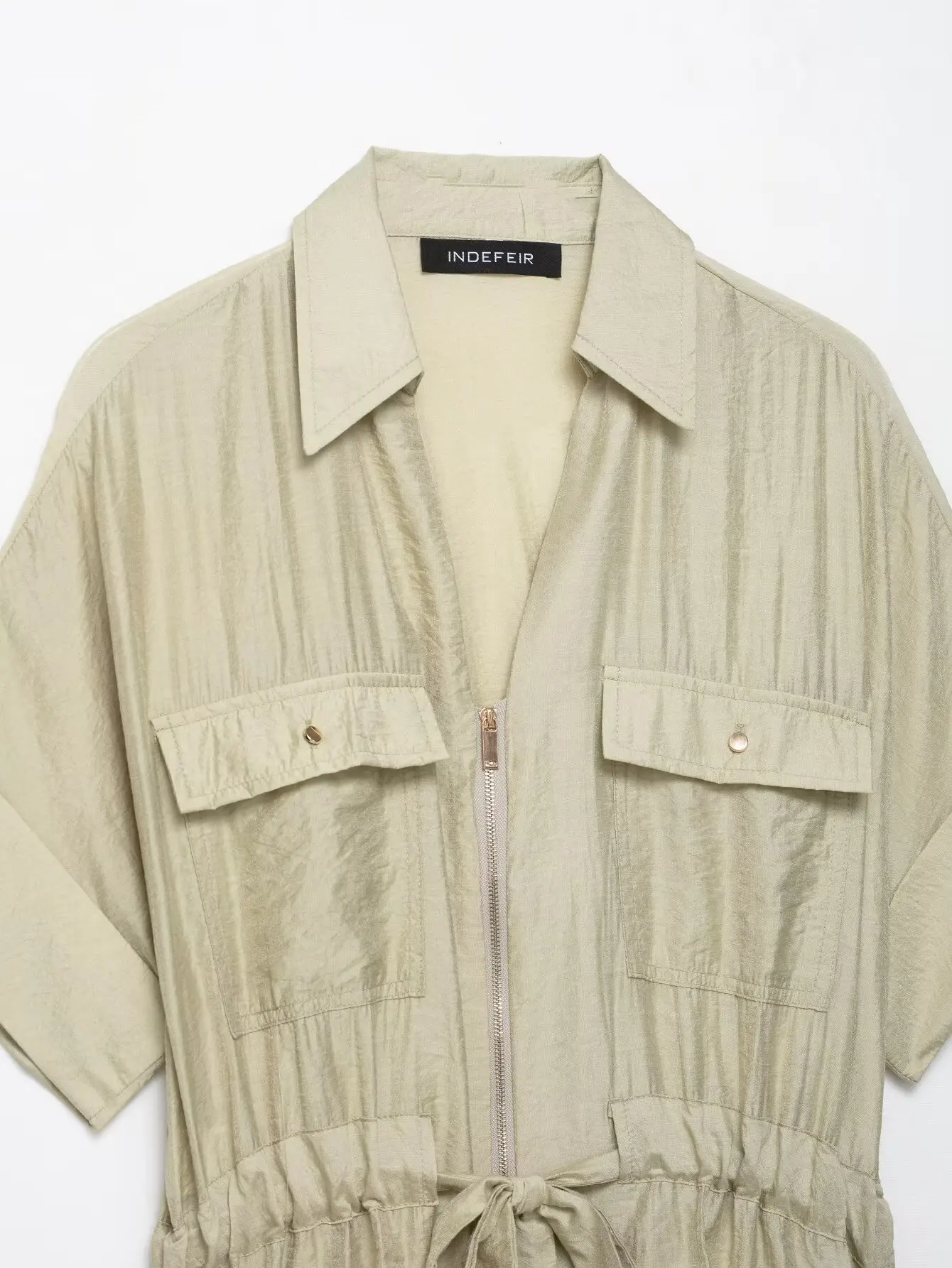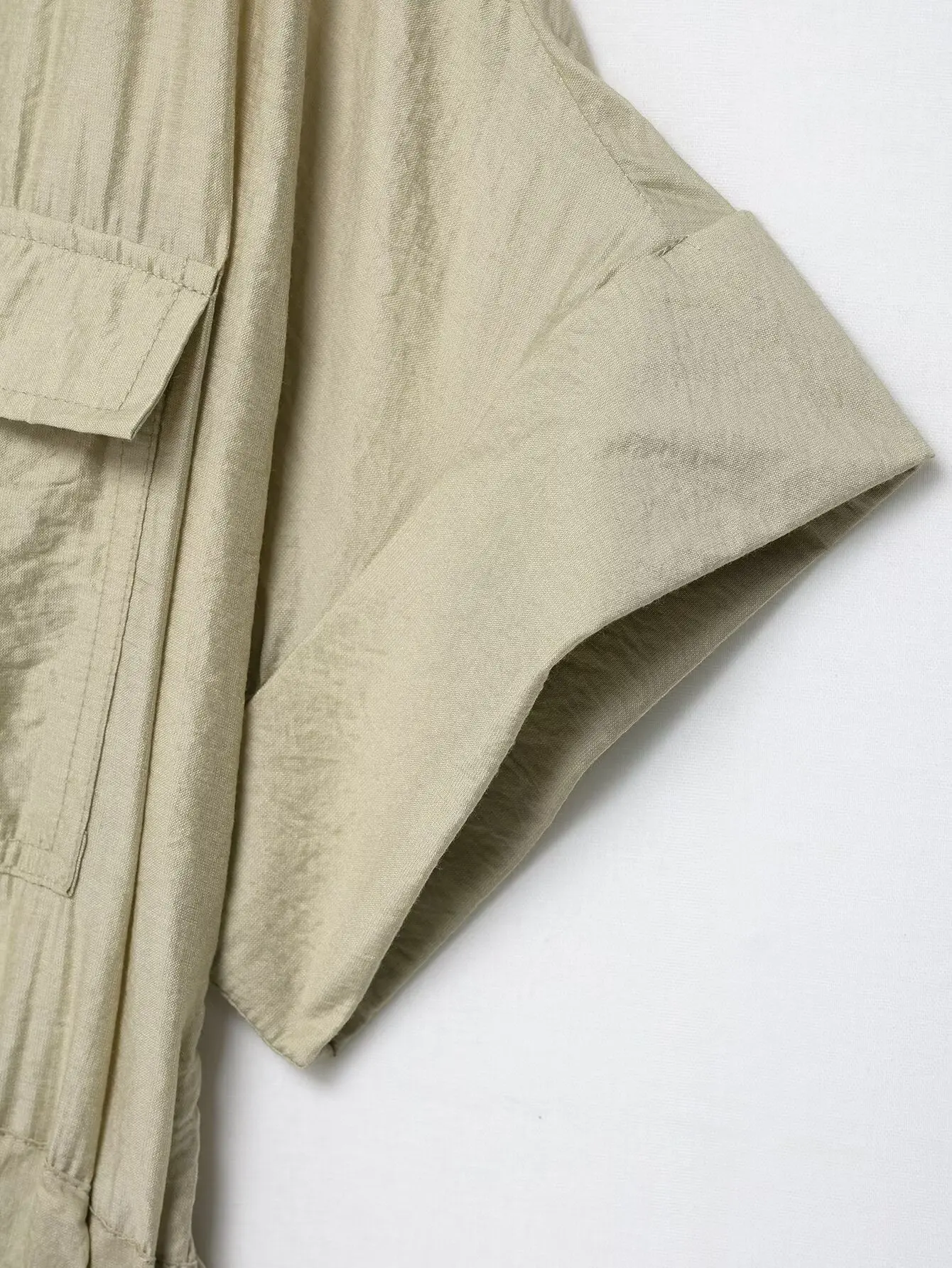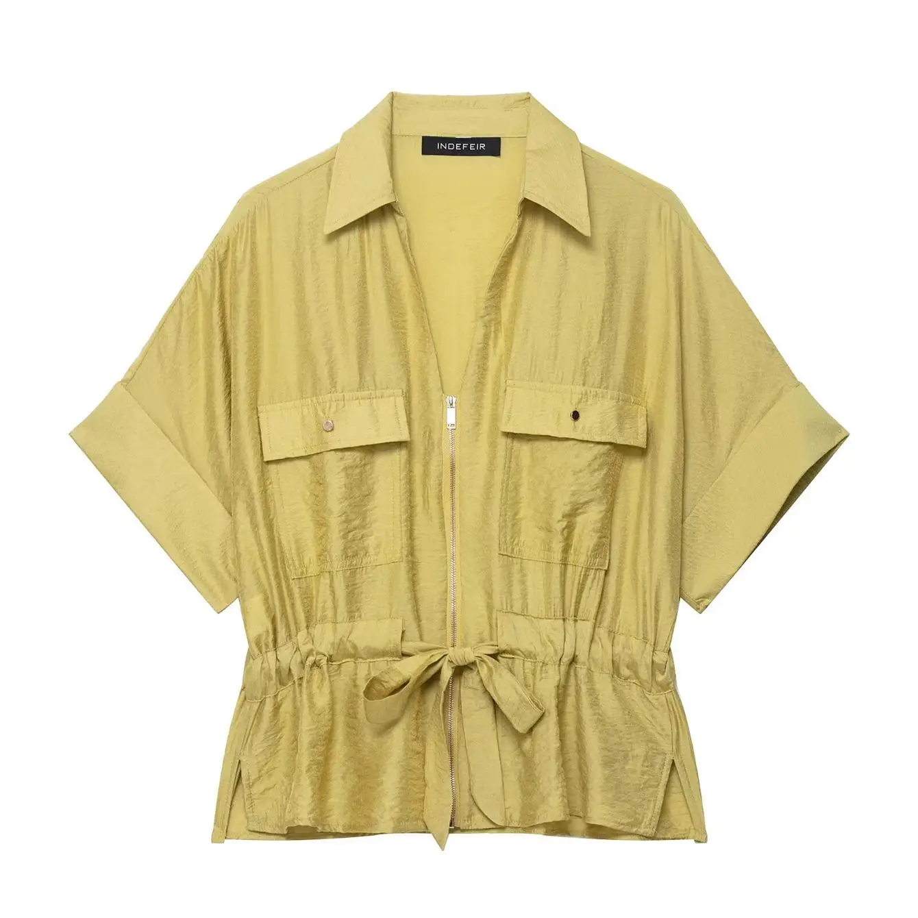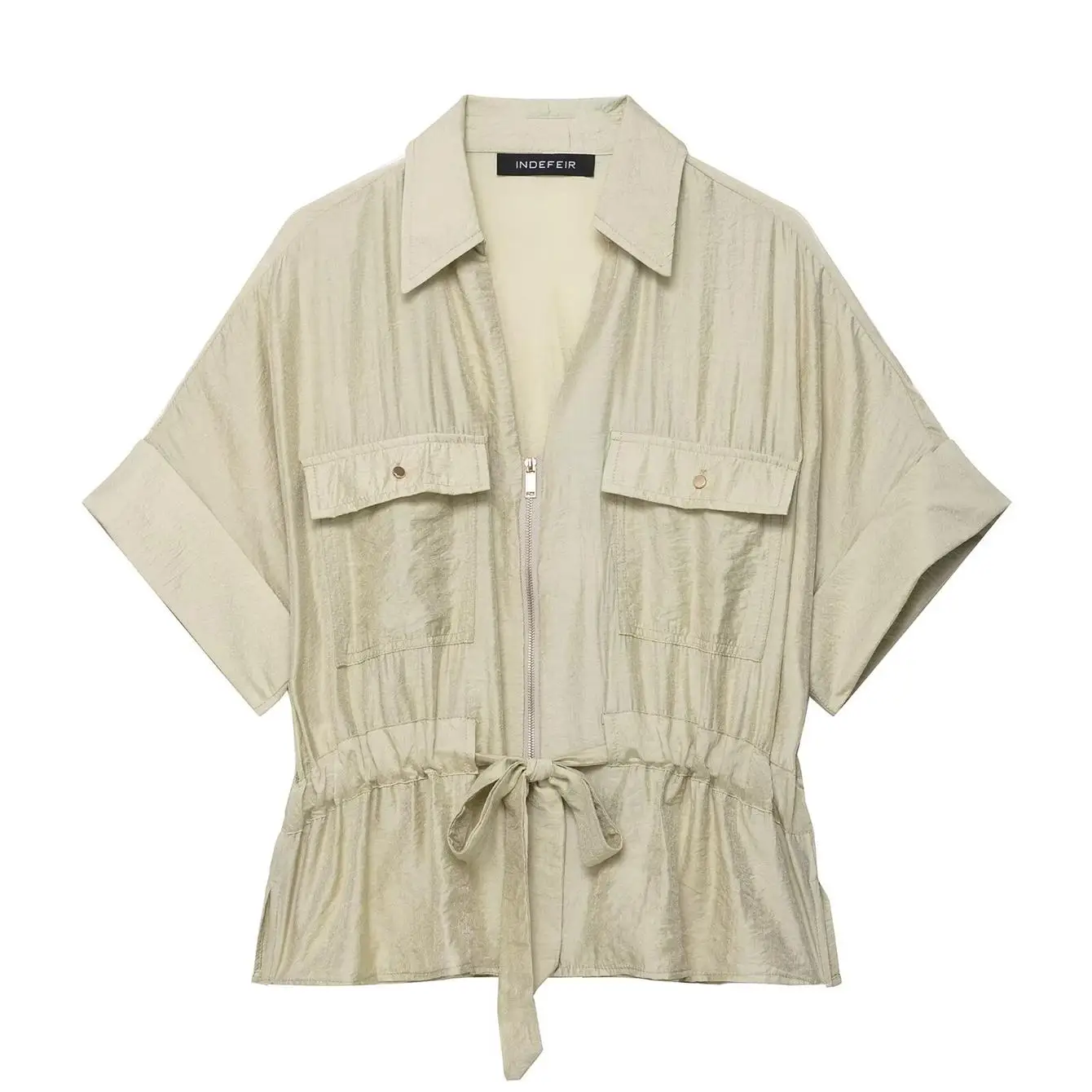 TFMLN Women Wide Leg Pant’s/2 Pieces Set’s/Short Sleeves Zipper Shirt/Straight Elastic Waist Trousers Chic Safari Style.