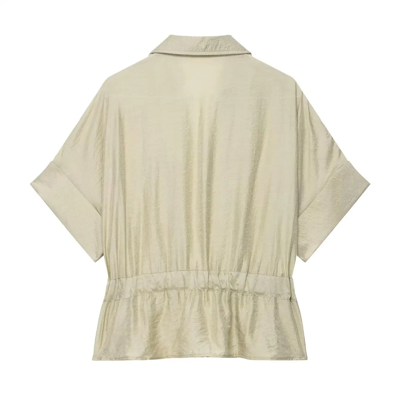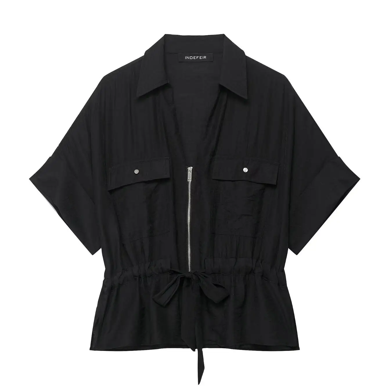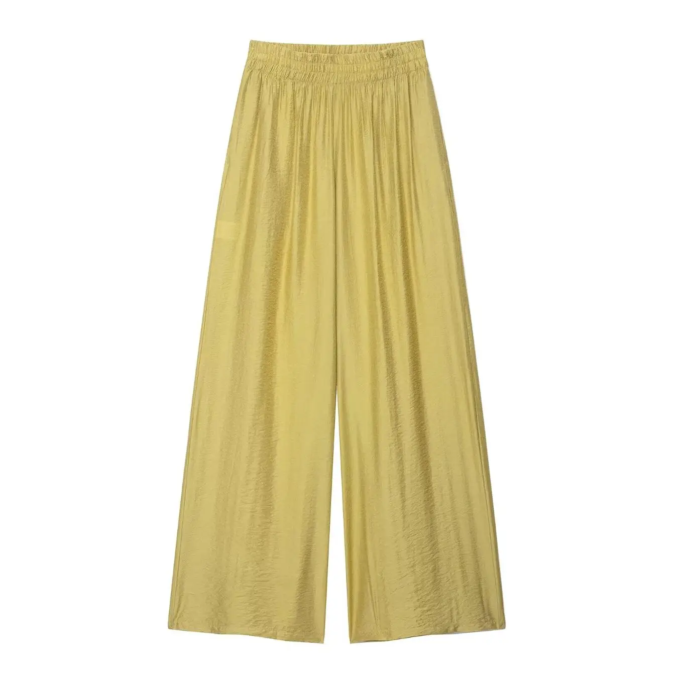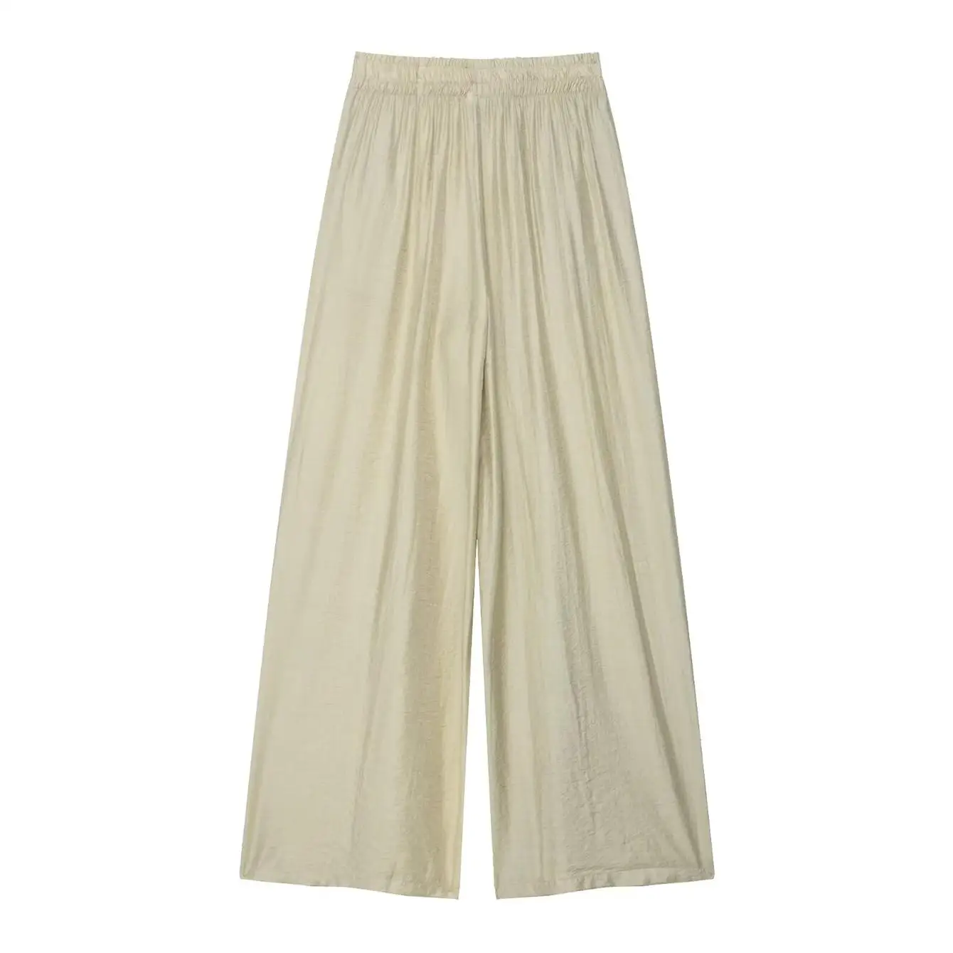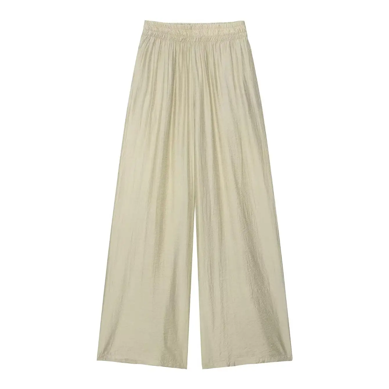 TFMLN Women Wide Leg Pant’s/2 Pieces Set’s/Short Sleeves Zipper Shirt/Straight Elastic Waist Trousers Chic Safari Style.
