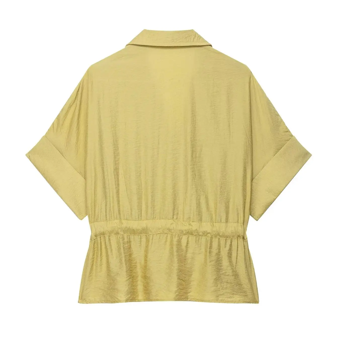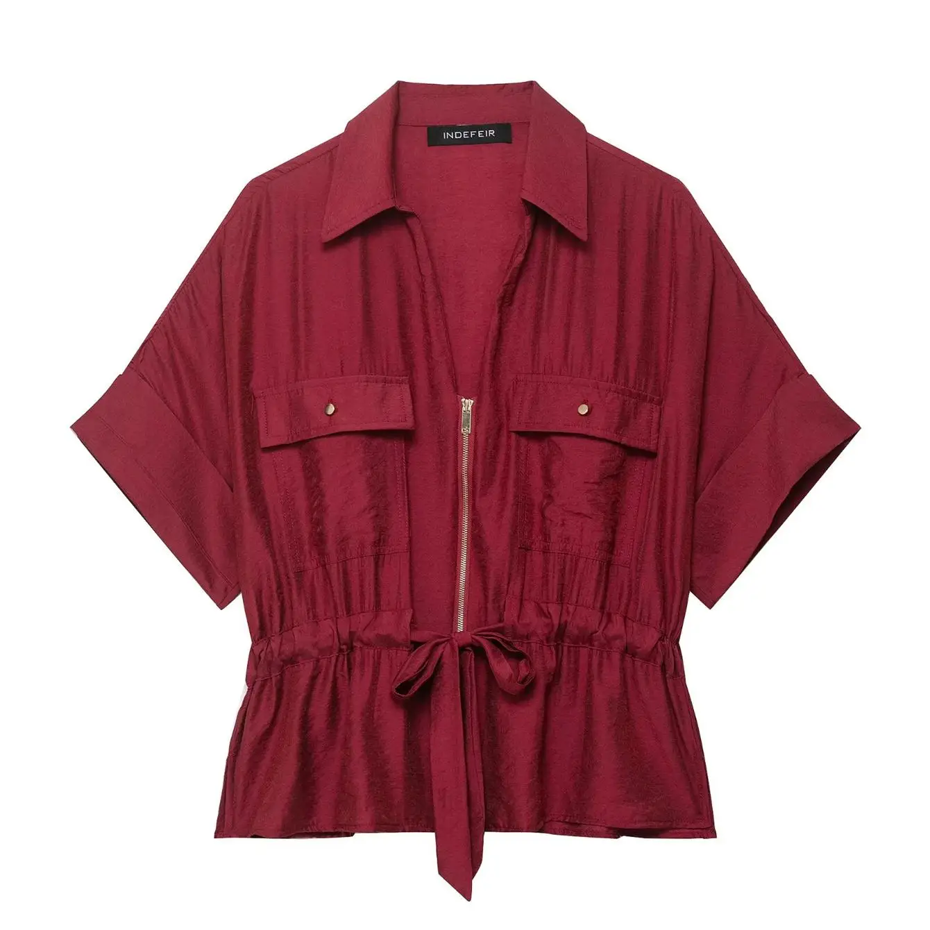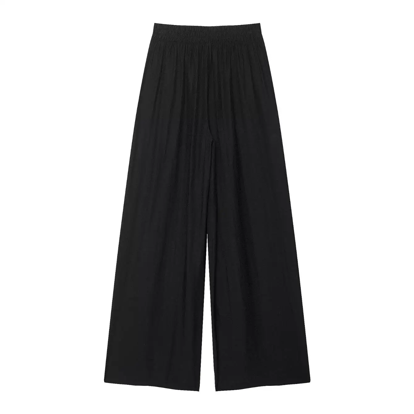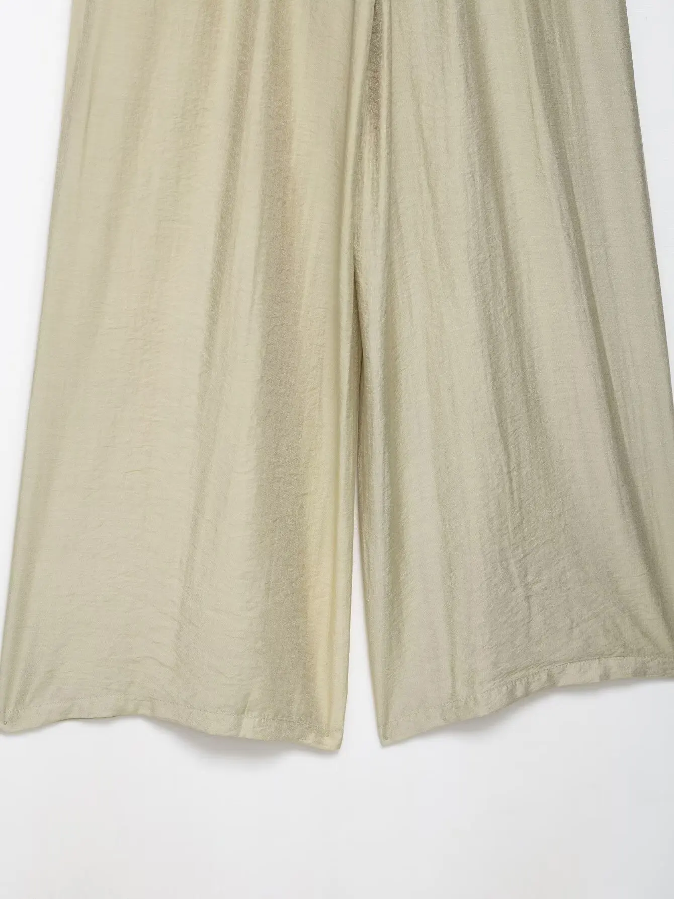 TFMLN Women Wide Leg Pant’s/2 Pieces Set’s/Short Sleeves Zipper Shirt/Straight Elastic Waist Trousers Chic Safari Style.