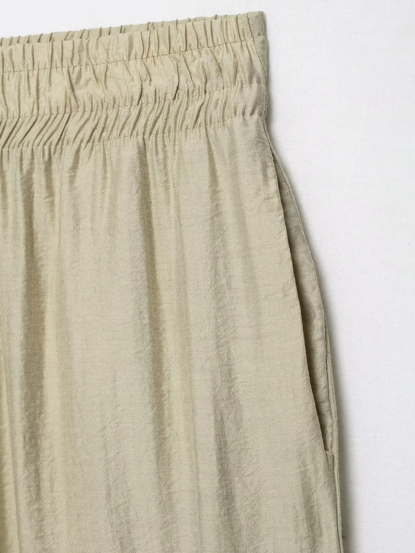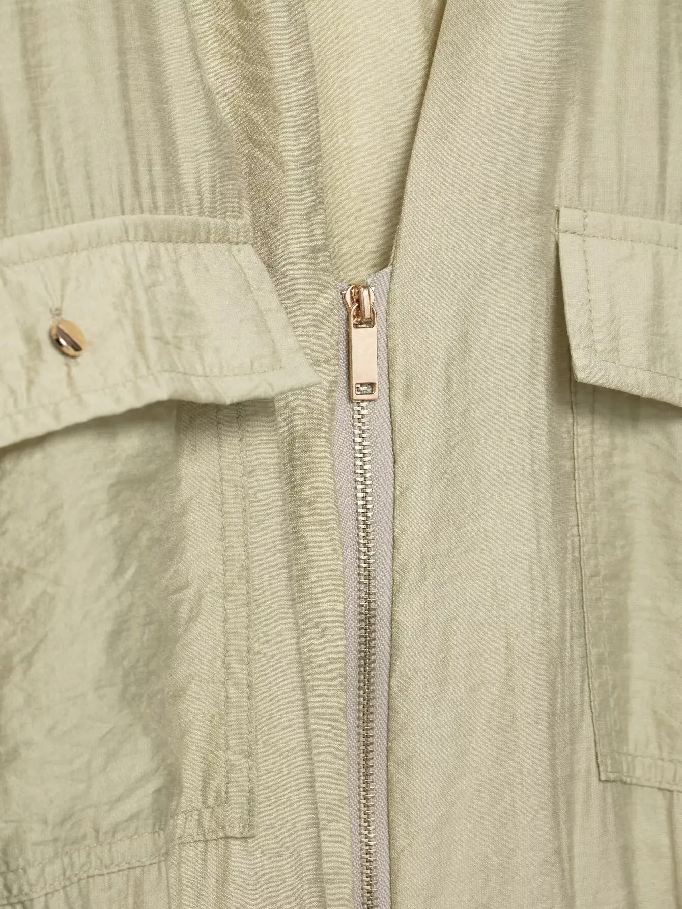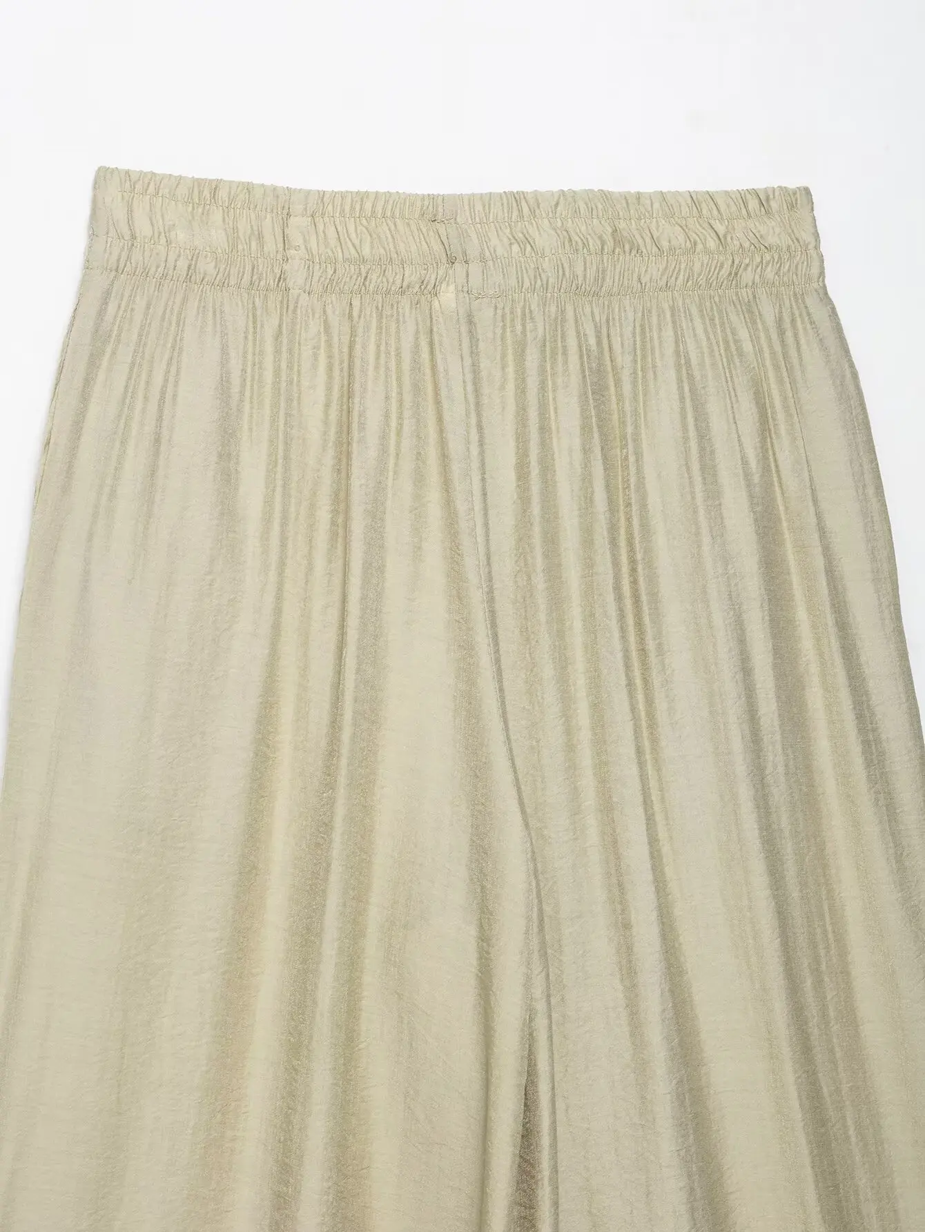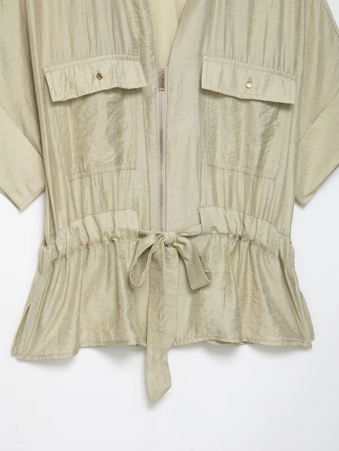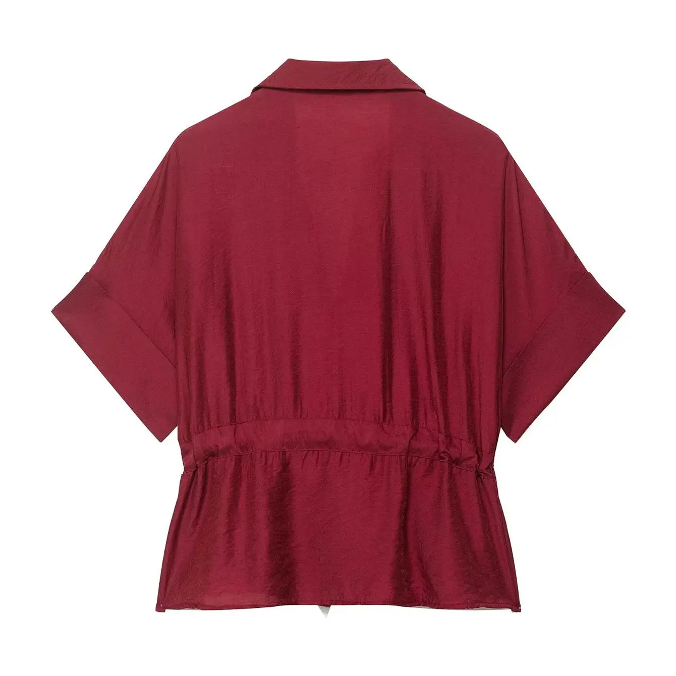 TFMLN Women Wide Leg Pant’s/2 Pieces Set’s/Short Sleeves Zipper Shirt/Straight Elastic Waist Trousers Chic Safari Style.
