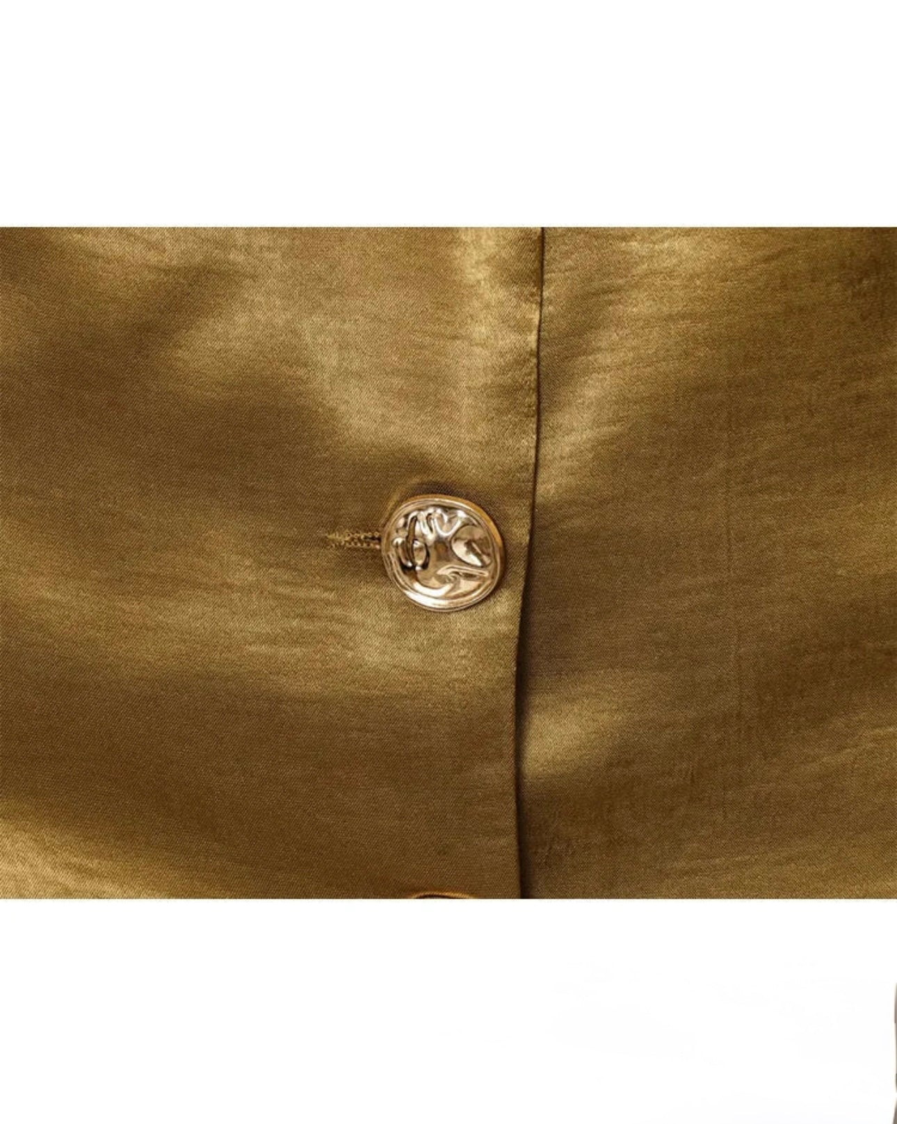2pcs/Set Women's Solid Color Button Up Deep V Neck Sleeveless Vest Tops And High Waist Wide Leg Pants With Pocket Casual Set, Graduation, Holiday, Linen Color Linen Suit, Casual.Two Pieces Outfit.