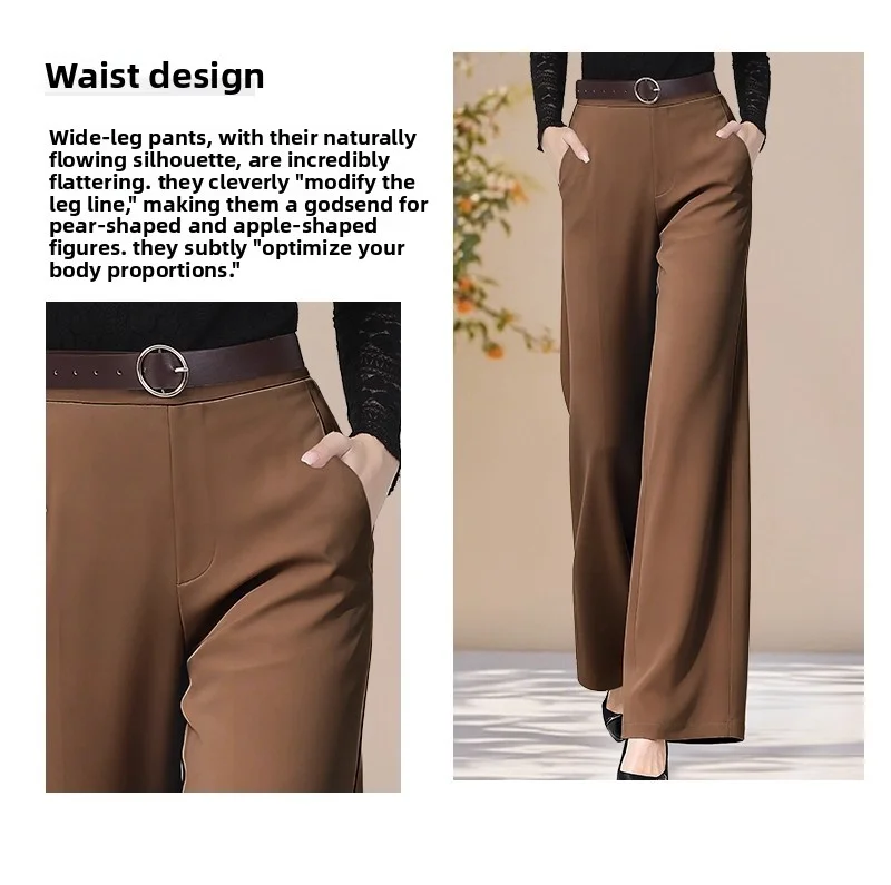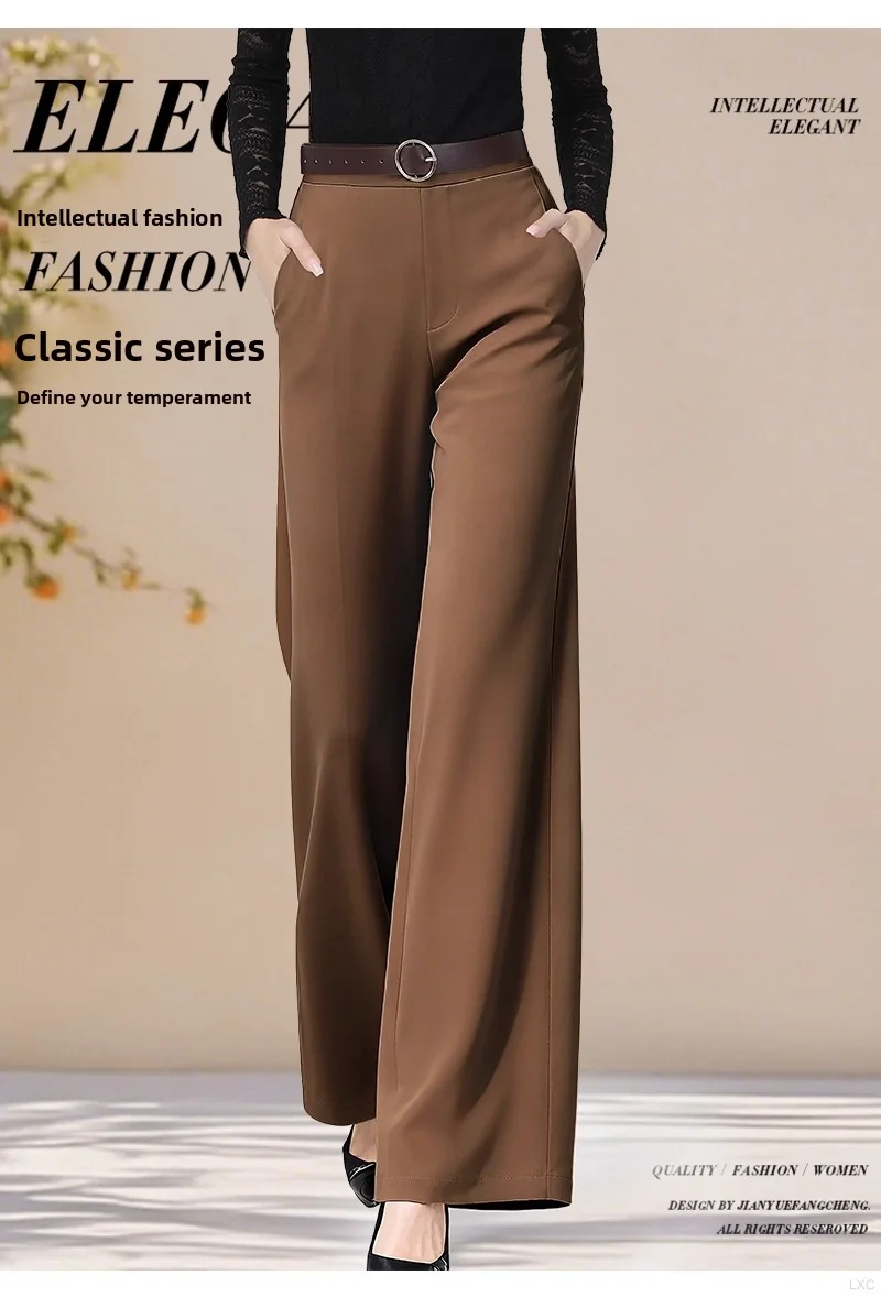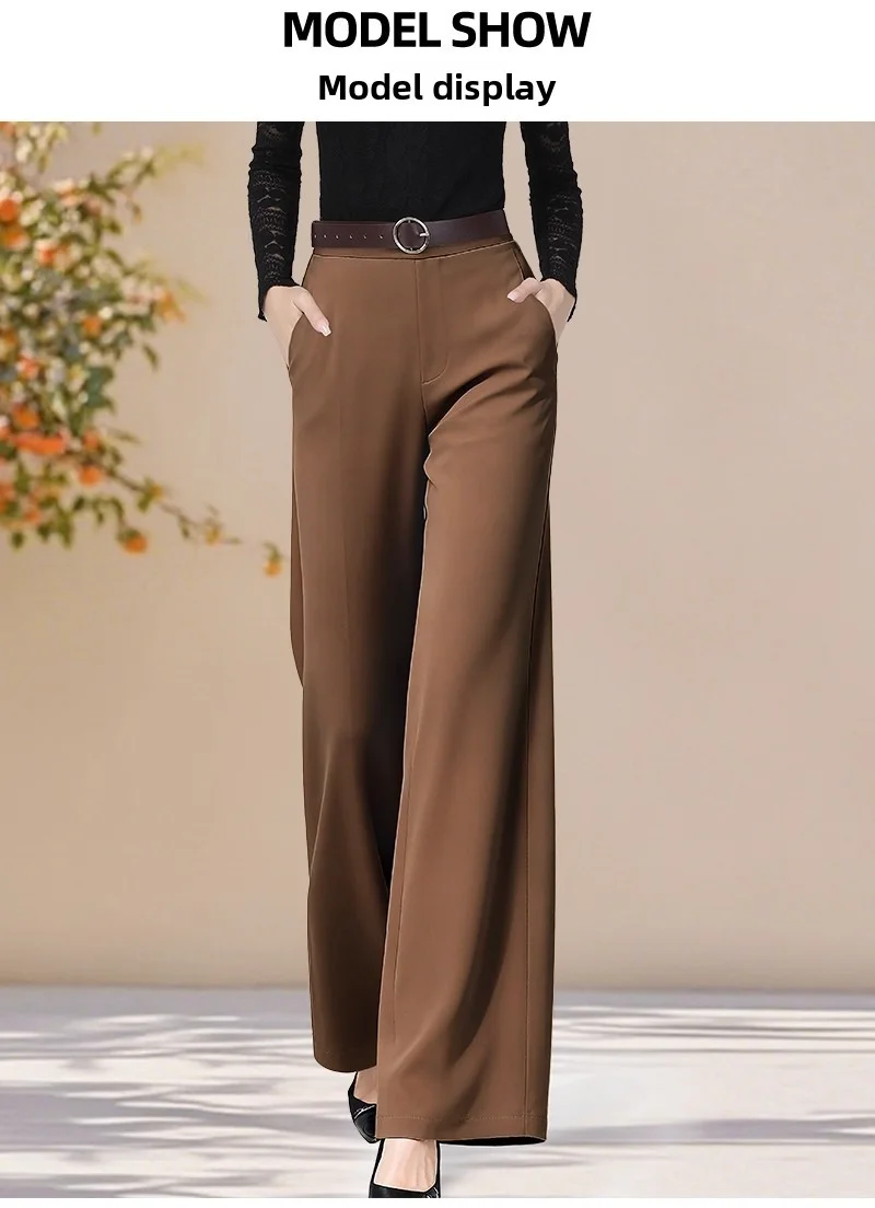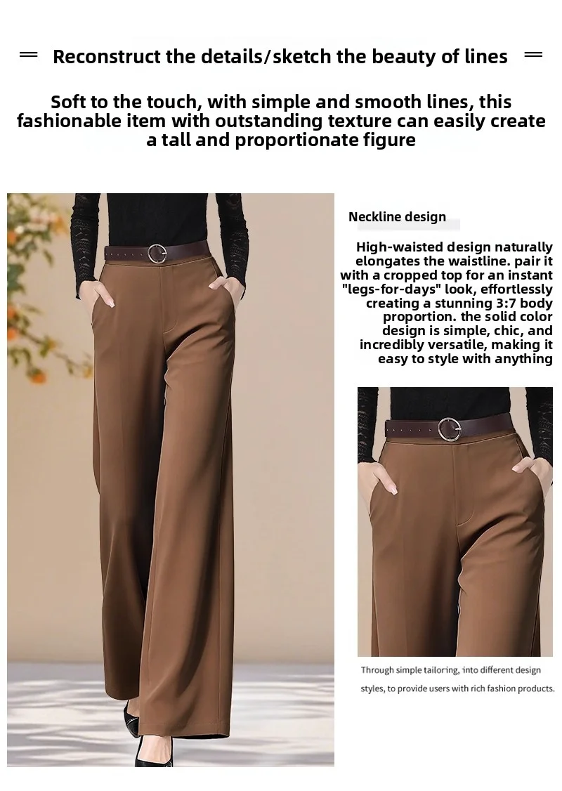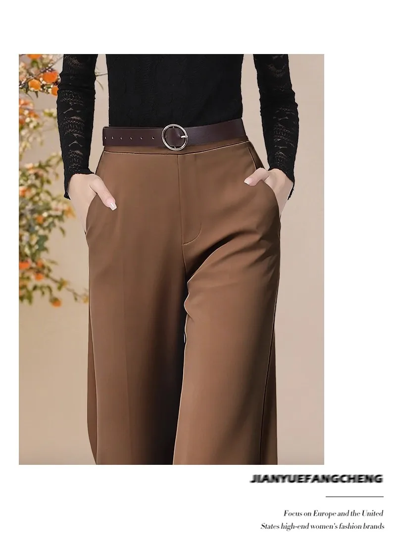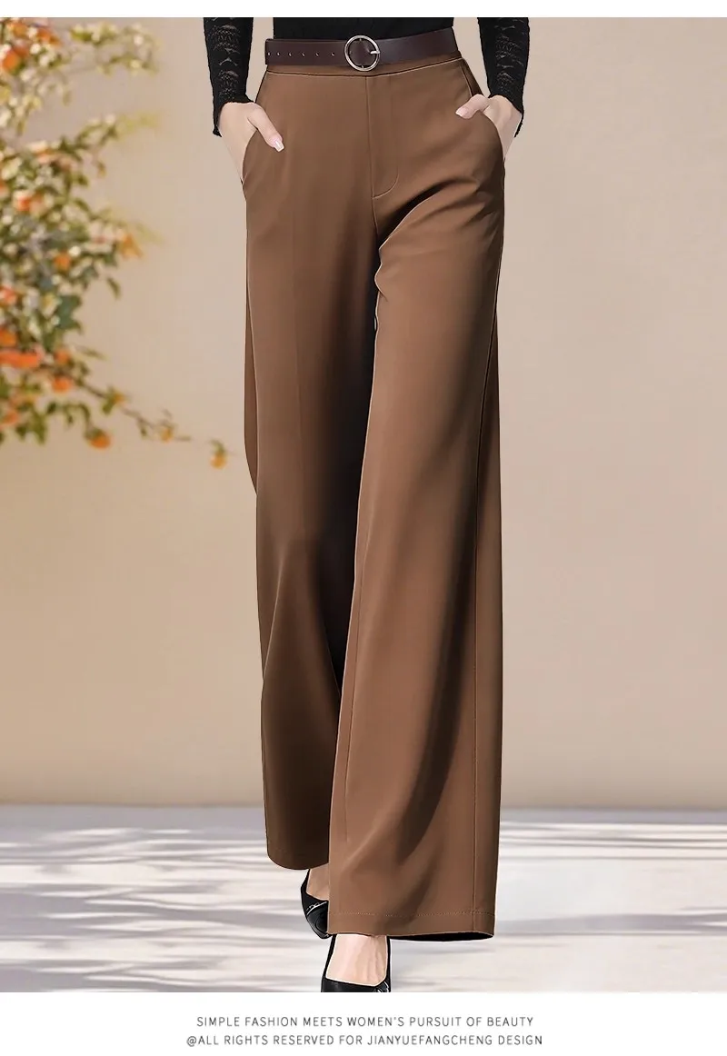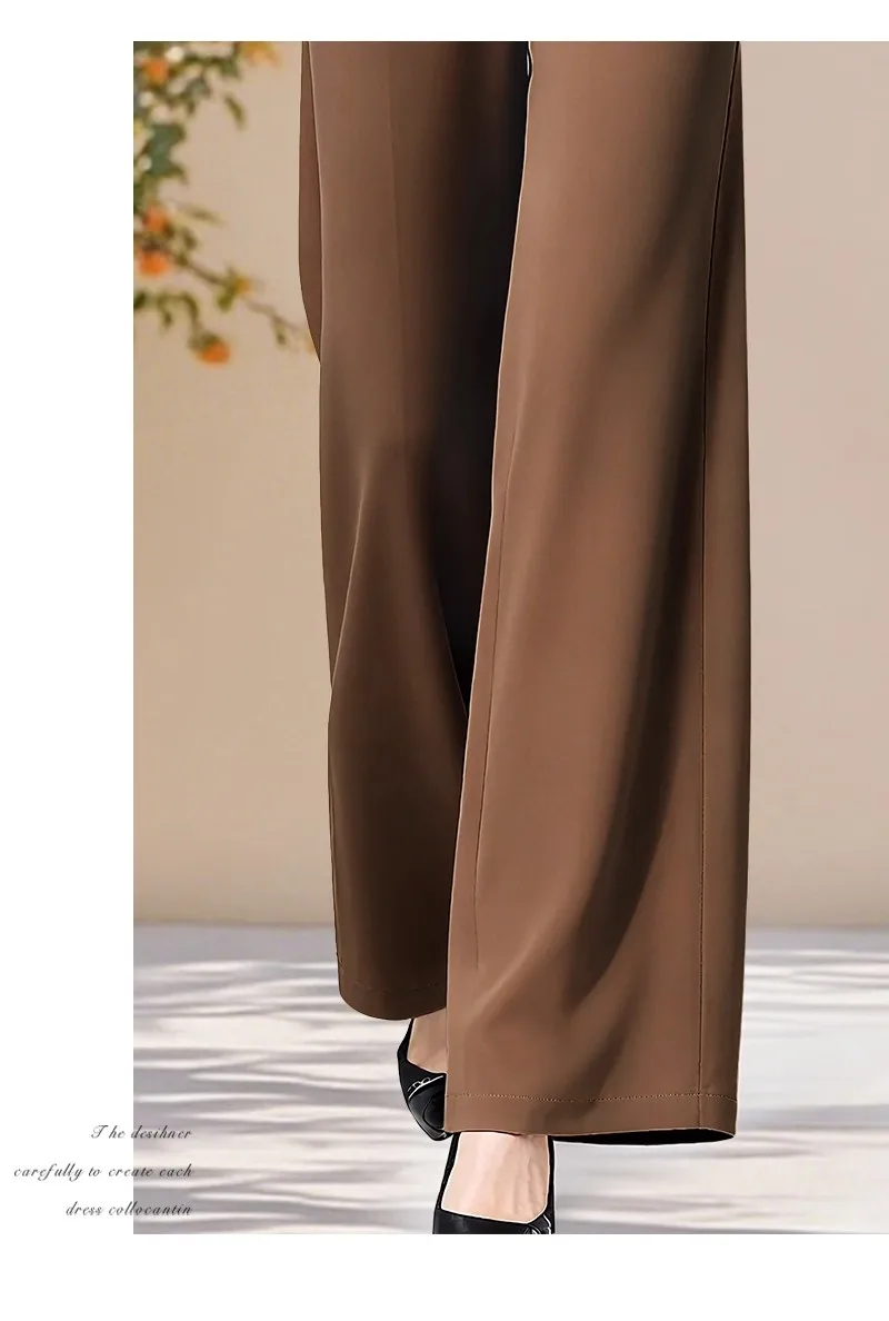 Refined Brown Wide Leg Pant’s For Autumn/High Waist Straight Long Trouser’s Business Formal.