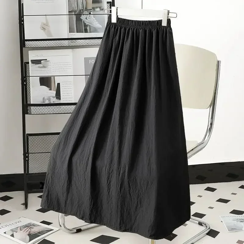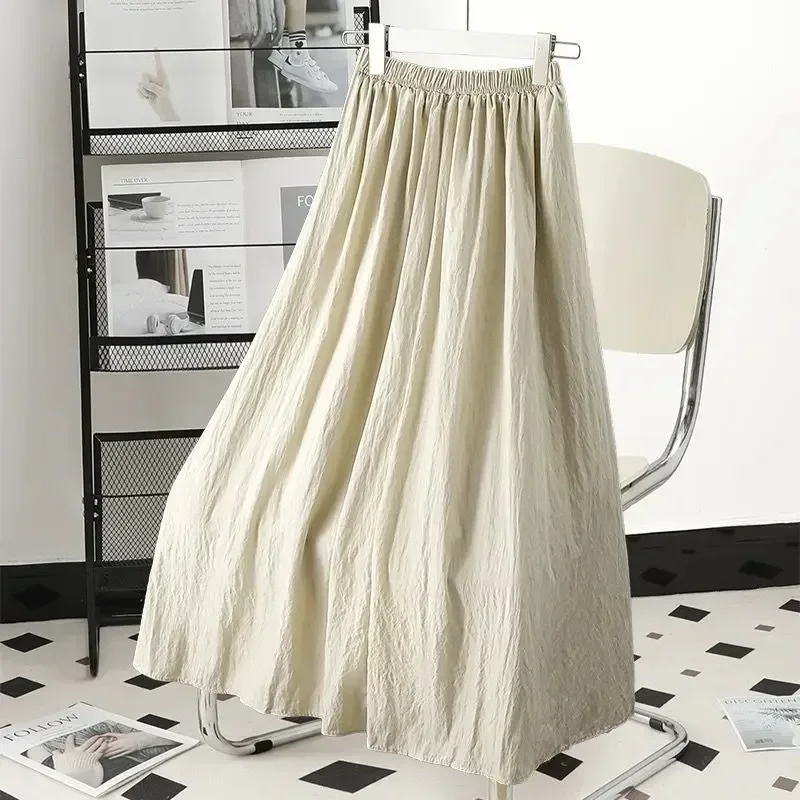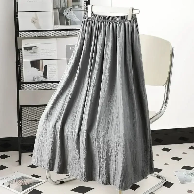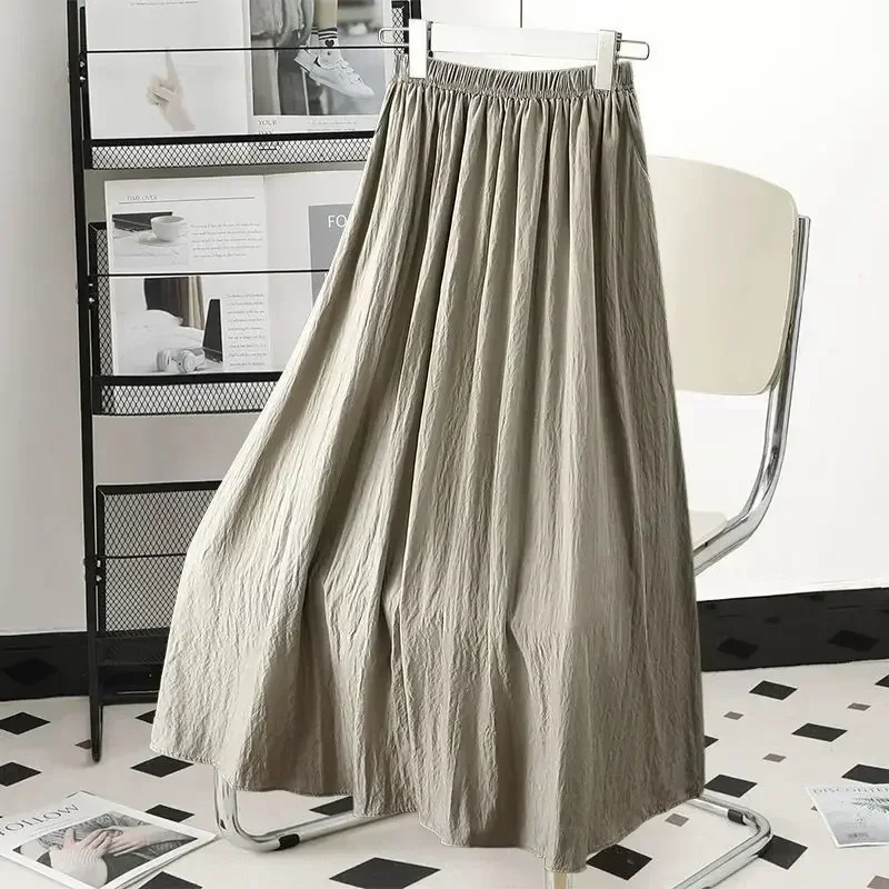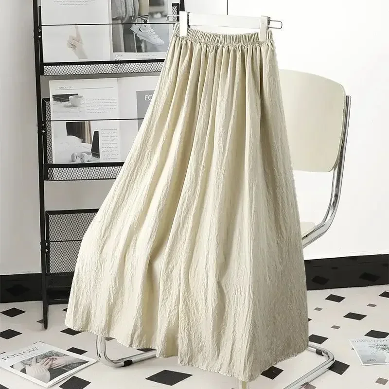 Solid New Trendy Pleated High Waist Solid Color Versatile Casual A-line Skirt/Ankle Length Tatting Craft.