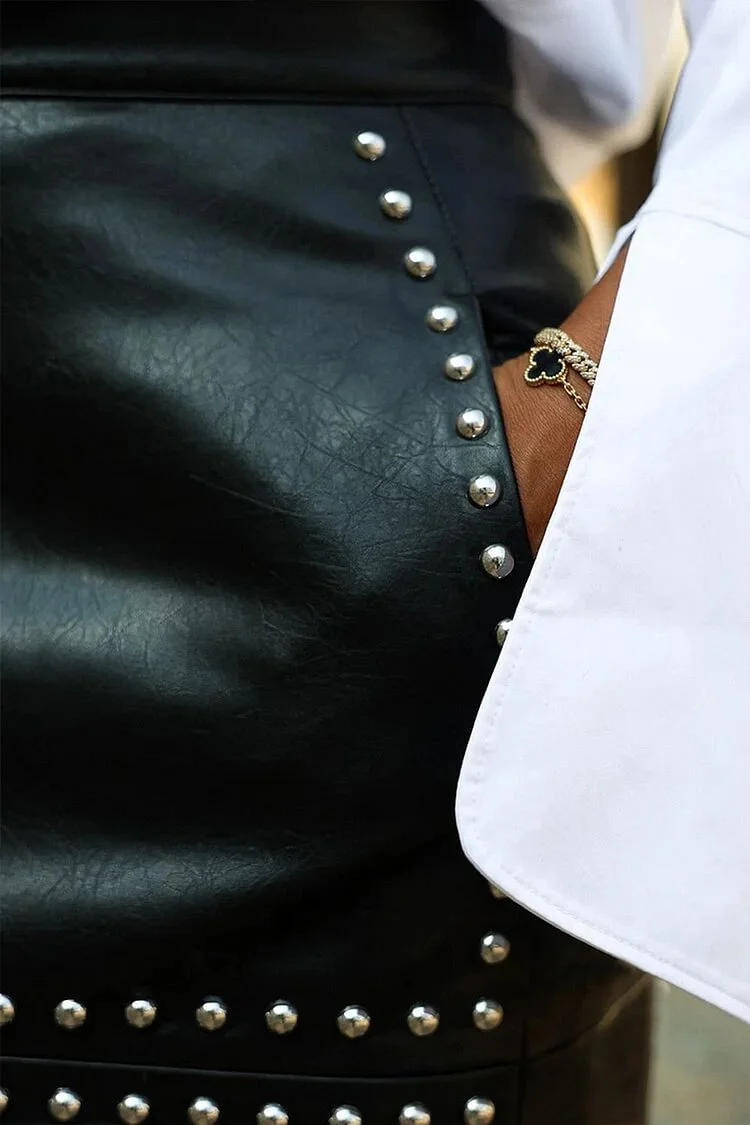 Split Studded Faux Leather Pencil Skirt/Glamorous High Waisted Black with Studded Detailing/Side Slit Edgy Chic Fashion Skirt’s.