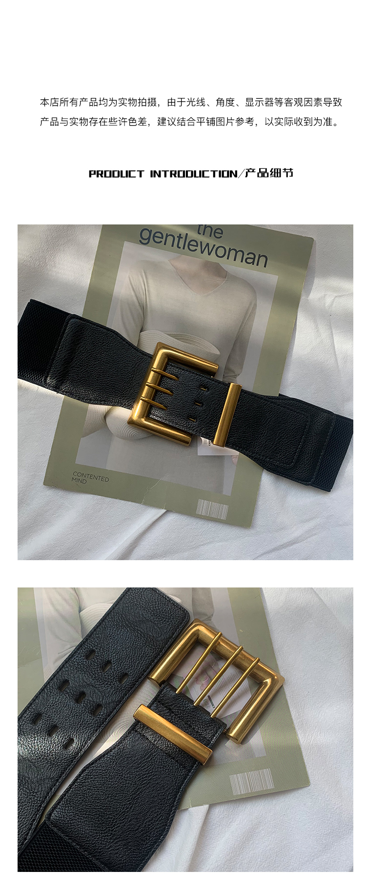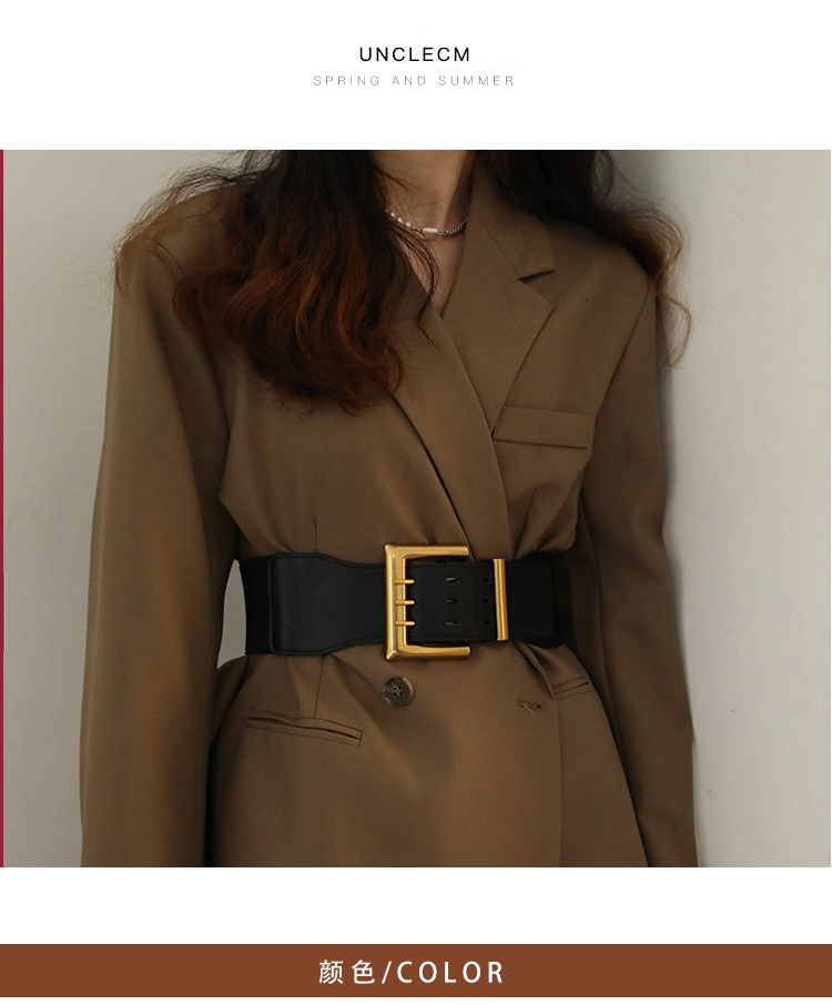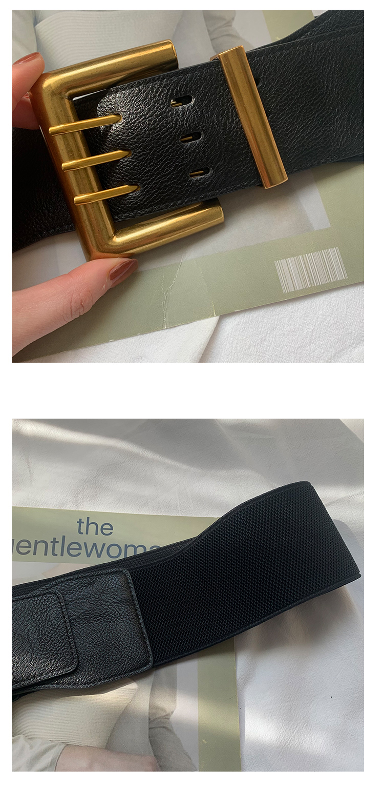Pinned Alloy INS-Style Buckle Belt/Fashion Elastic Wide Smoothed Modern Square Belt.