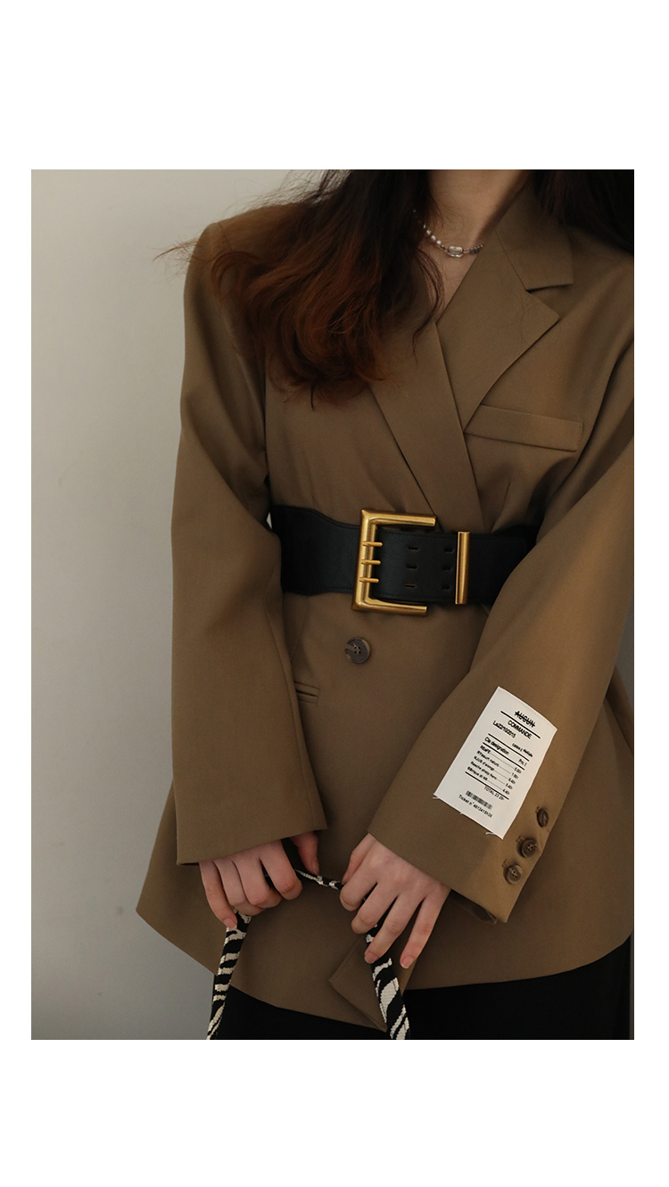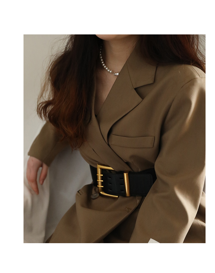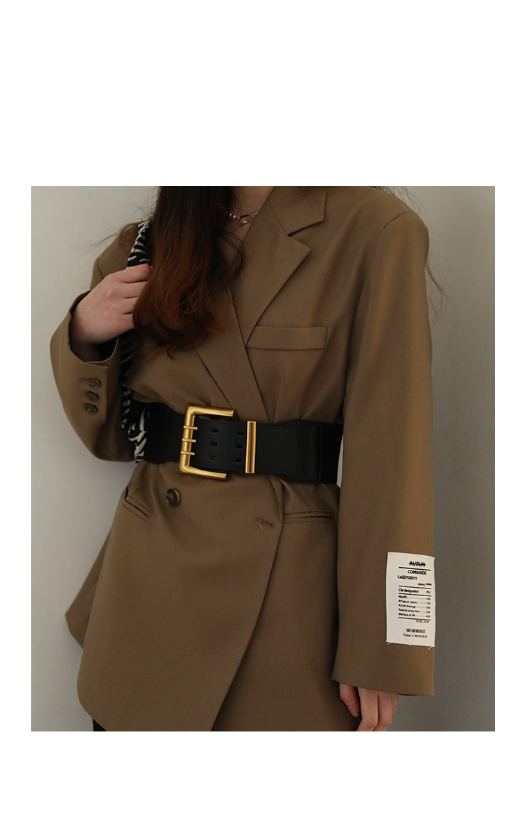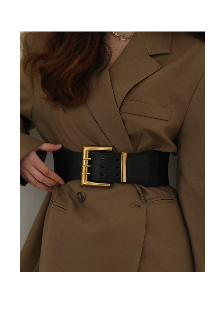 Pinned Alloy INS-Style Buckle Belt/Fashion Elastic Wide Smoothed Modern Square Belt.